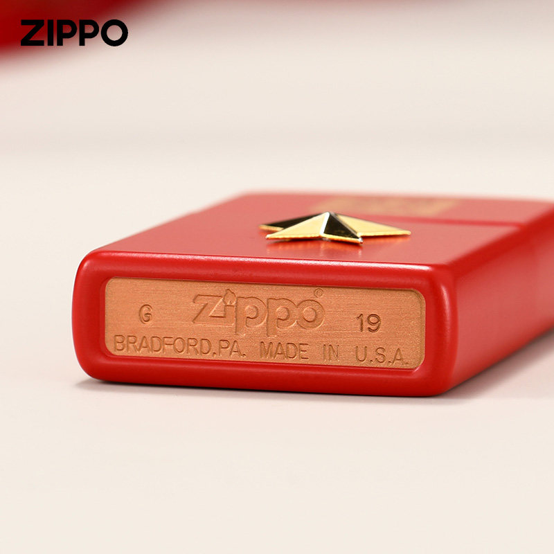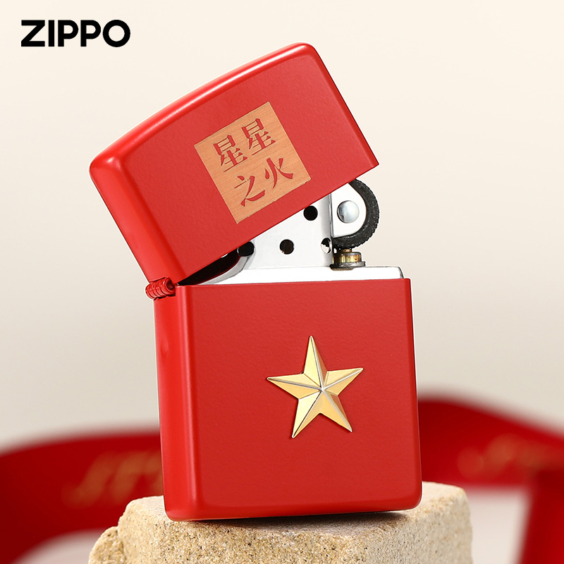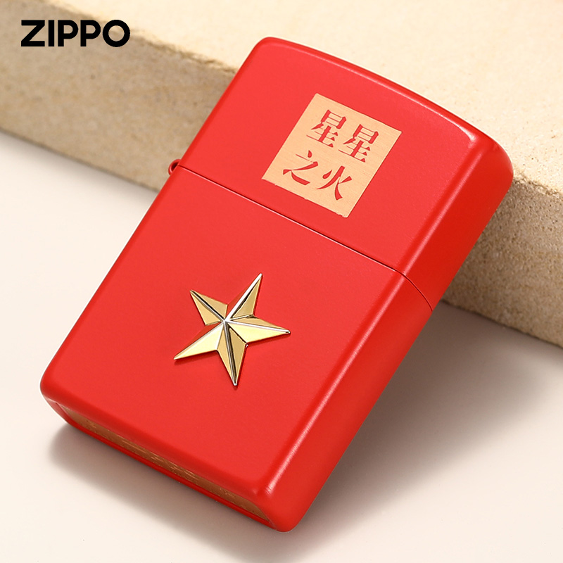 Zippo打火机红哑漆星星之火正品煤油外壳男士礼物定制防风刻字