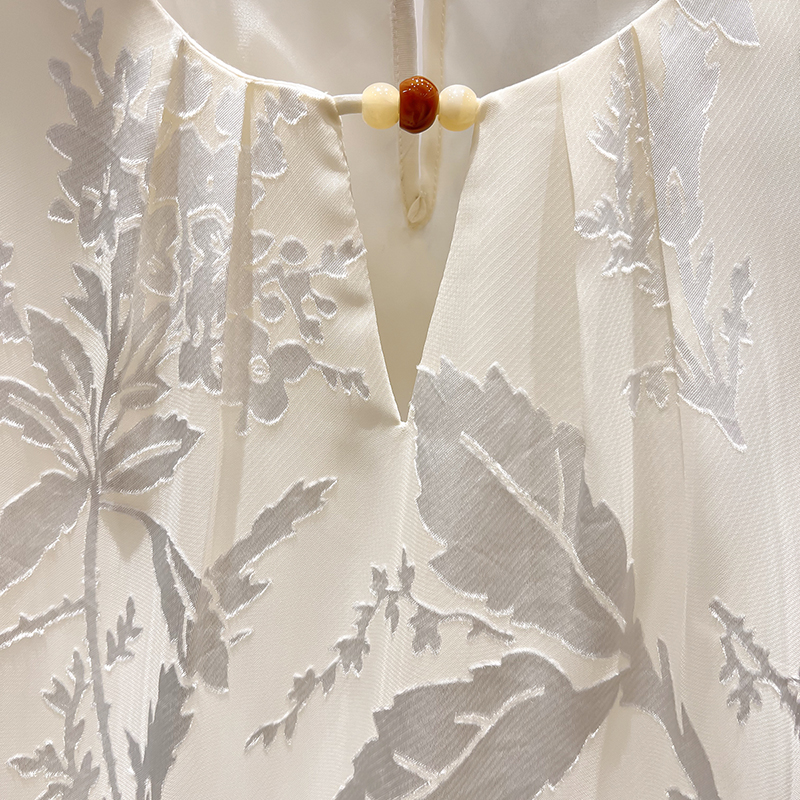 2025新款法式气质复古圆领镂空串珠印花浮雕长袖雪纺衫女秋季薄款