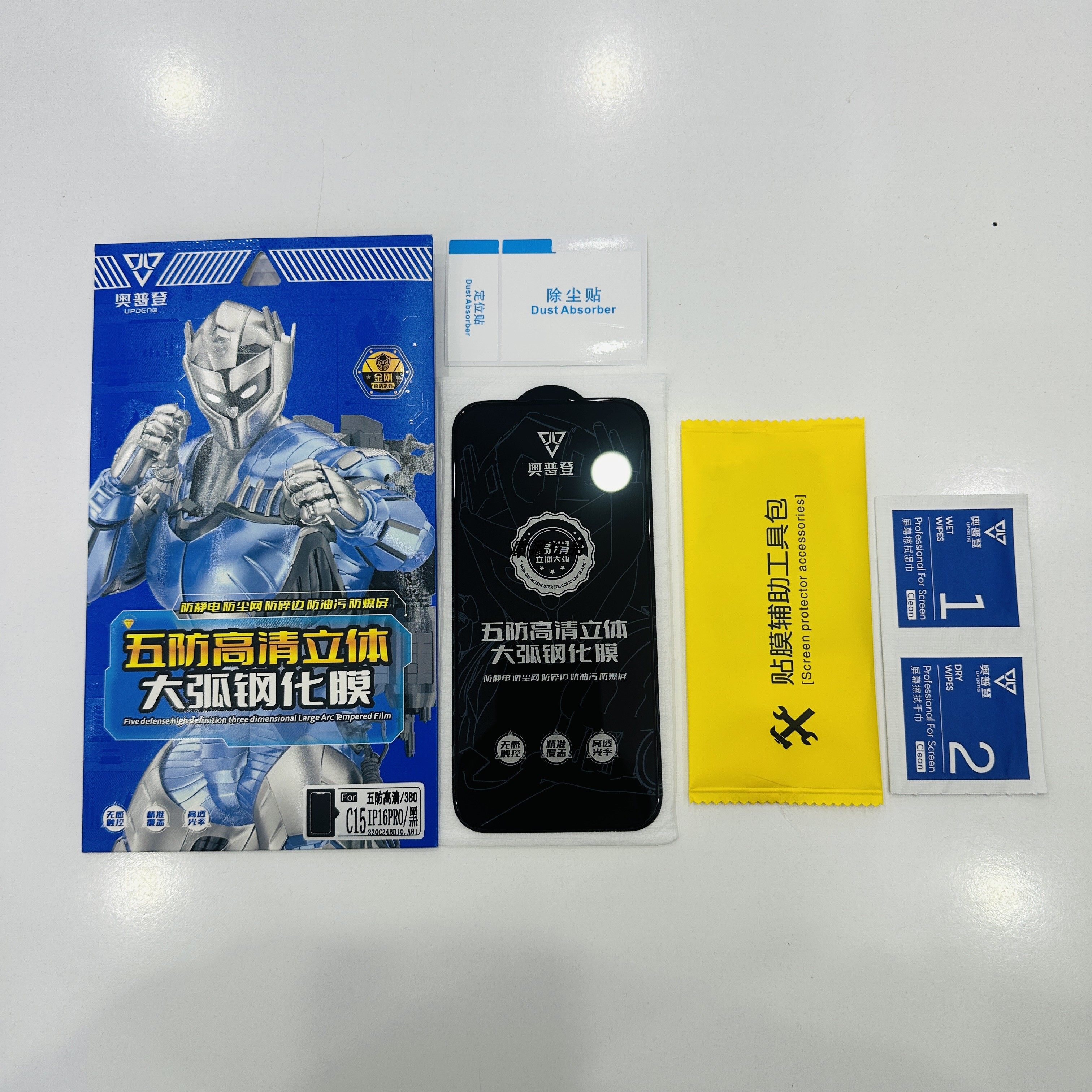 奥普登五防钢化膜适用于16PRO/12Promax/15plus/13Pro/11防静电高清防尘网高清防爆玻璃屏幕手机保护膜全屏膜