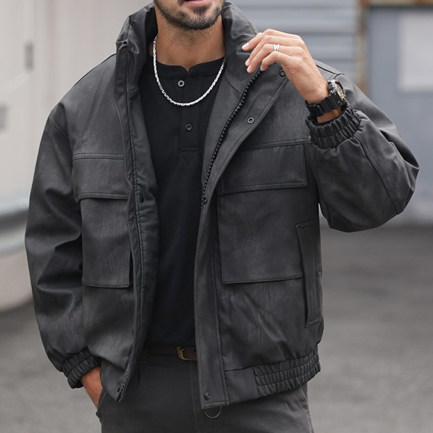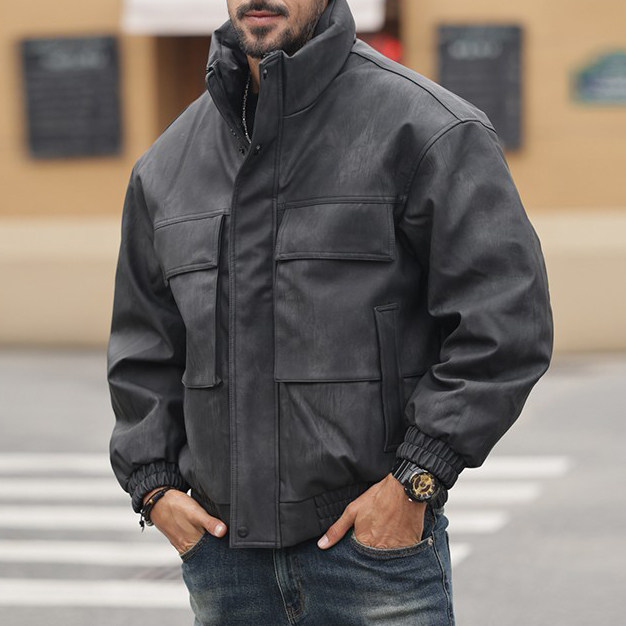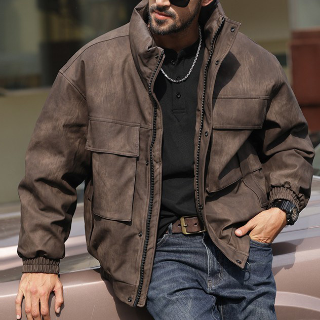重磅高级感男士皮衣羽绒服立领冬季保暖美式复古男士白鸭绒加厚