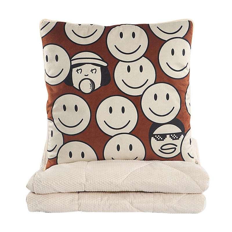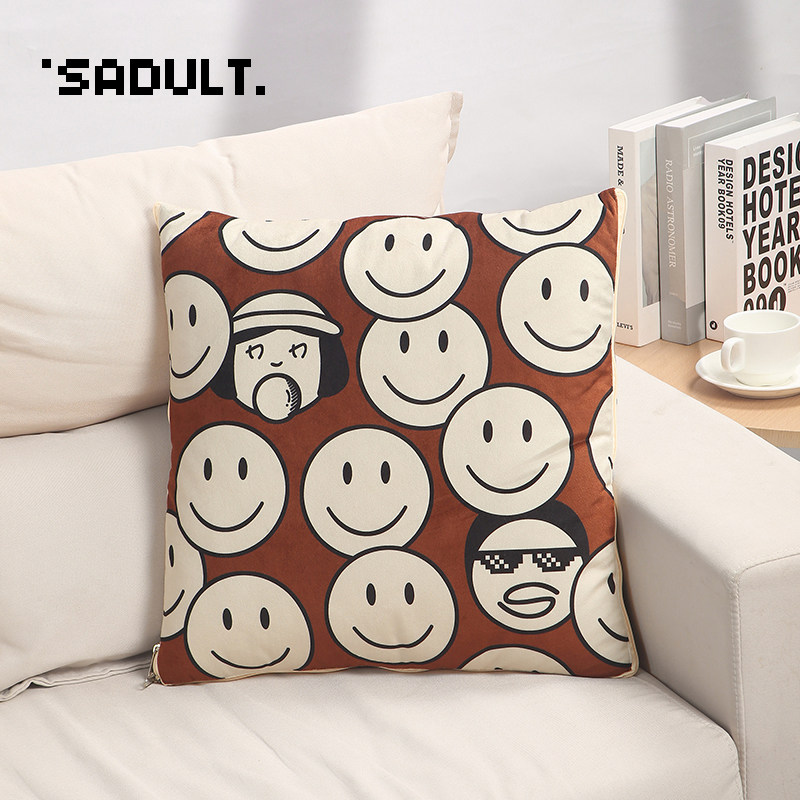 SADULT可爱笑脸棕方形抱枕被