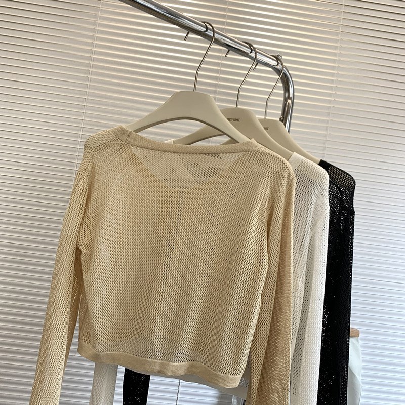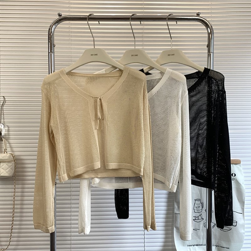 系带防晒披肩外搭镂空针织开衫春夏季长袖罩衫短款网衫外套上衣女