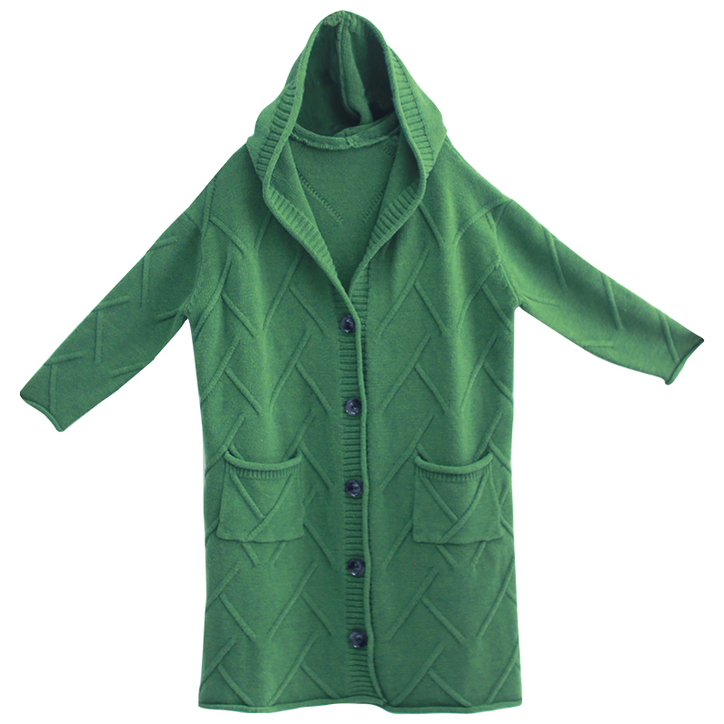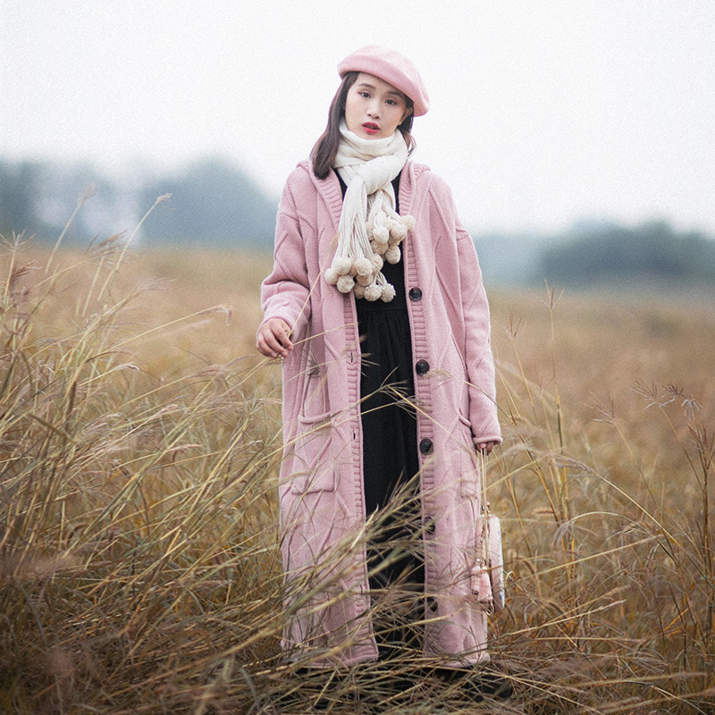 【7折】秋冬款加厚针织衫宽松中长款连帽长款毛衣外套女开衫保暖