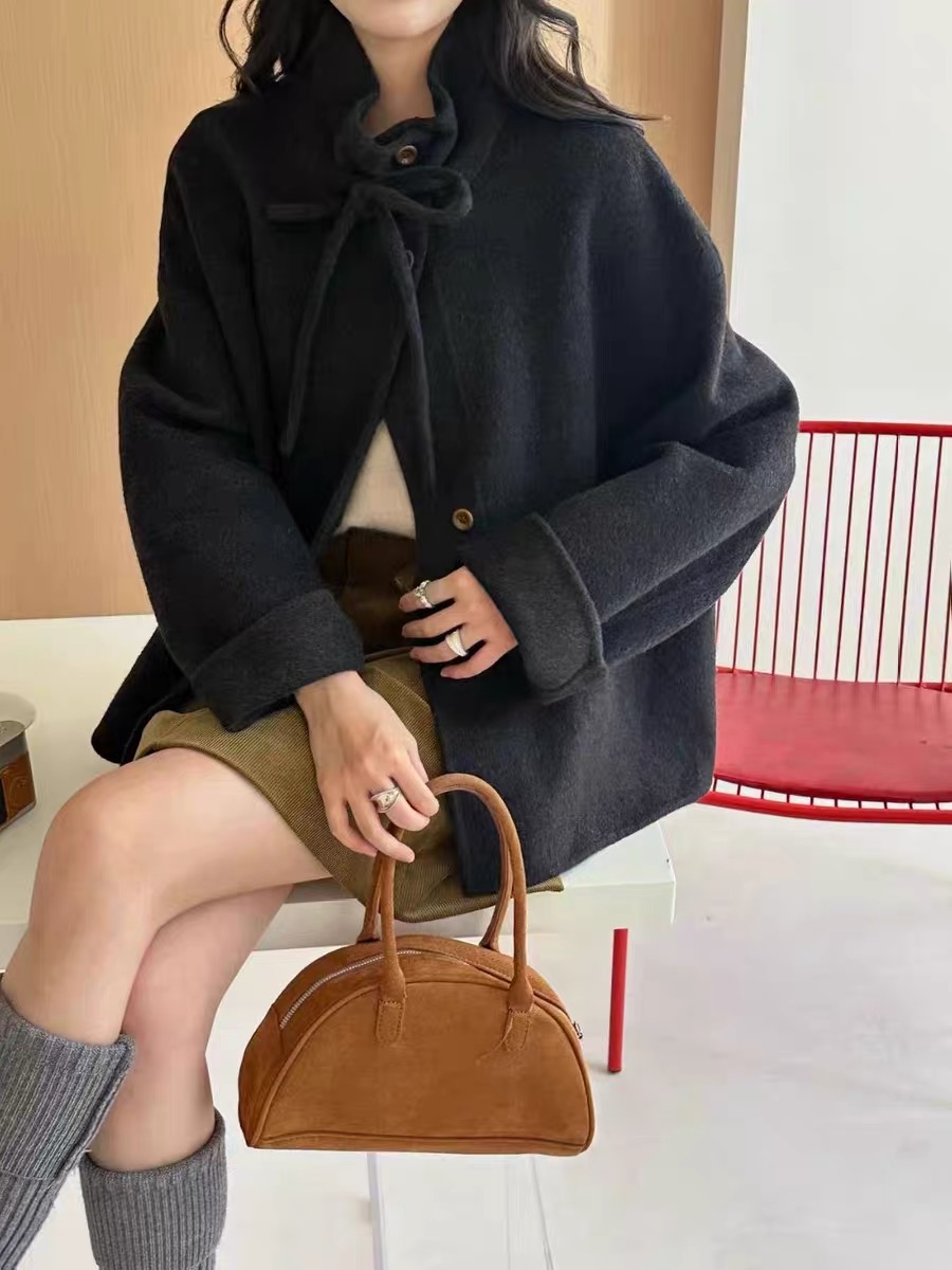 2025秋冬新款双面羊绒大衣女短款韩版宽松羊毛呢子外套