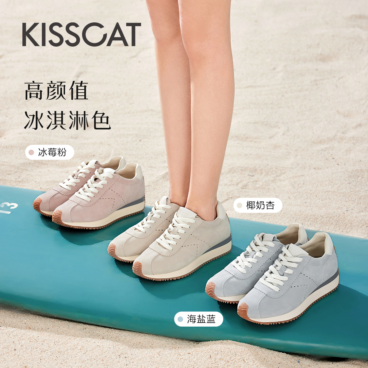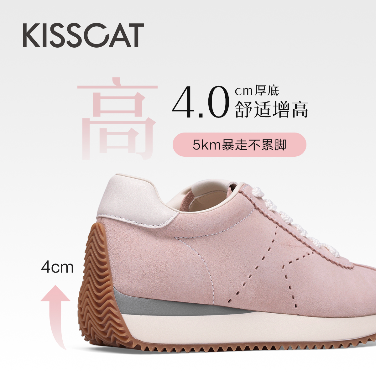 【舒心】KISSCAT接吻猫[甜茶]德训鞋秋季运动鞋增高时尚休闲鞋女