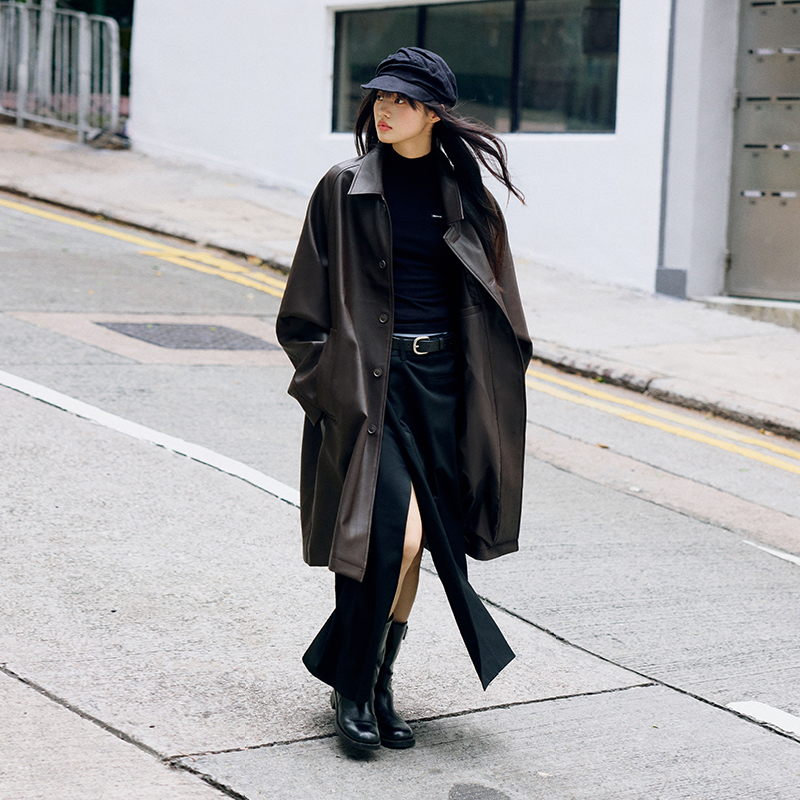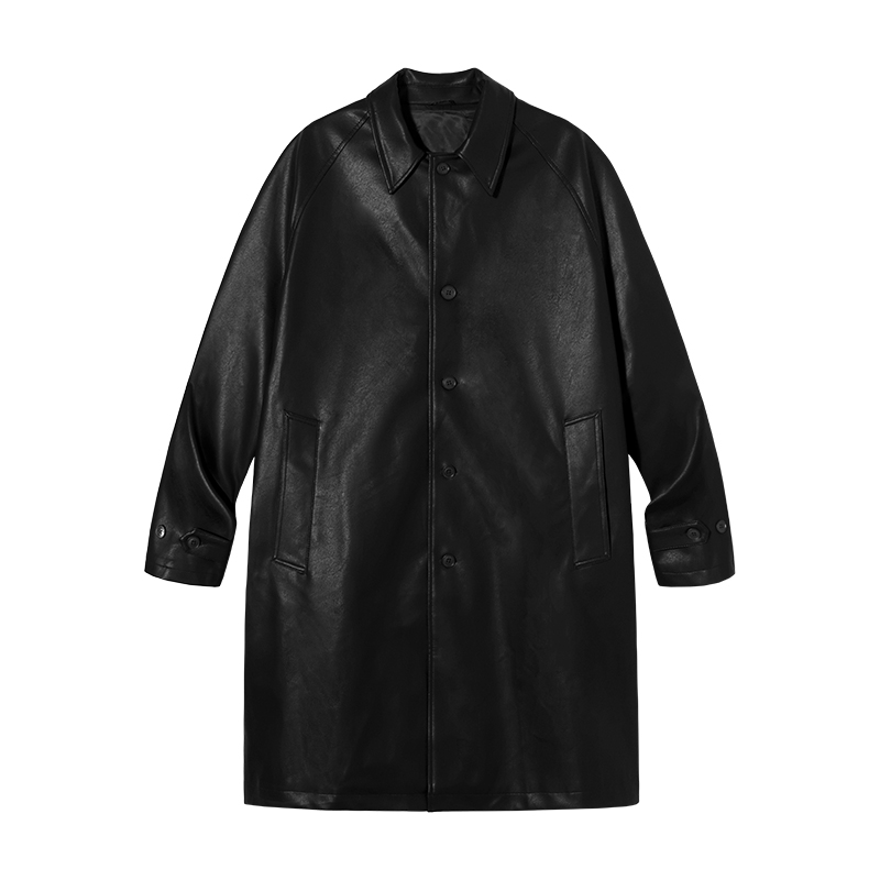 PSO Brand男装女装美式复古亮光PU皮中长款宽松大衣外套女秋冬潮