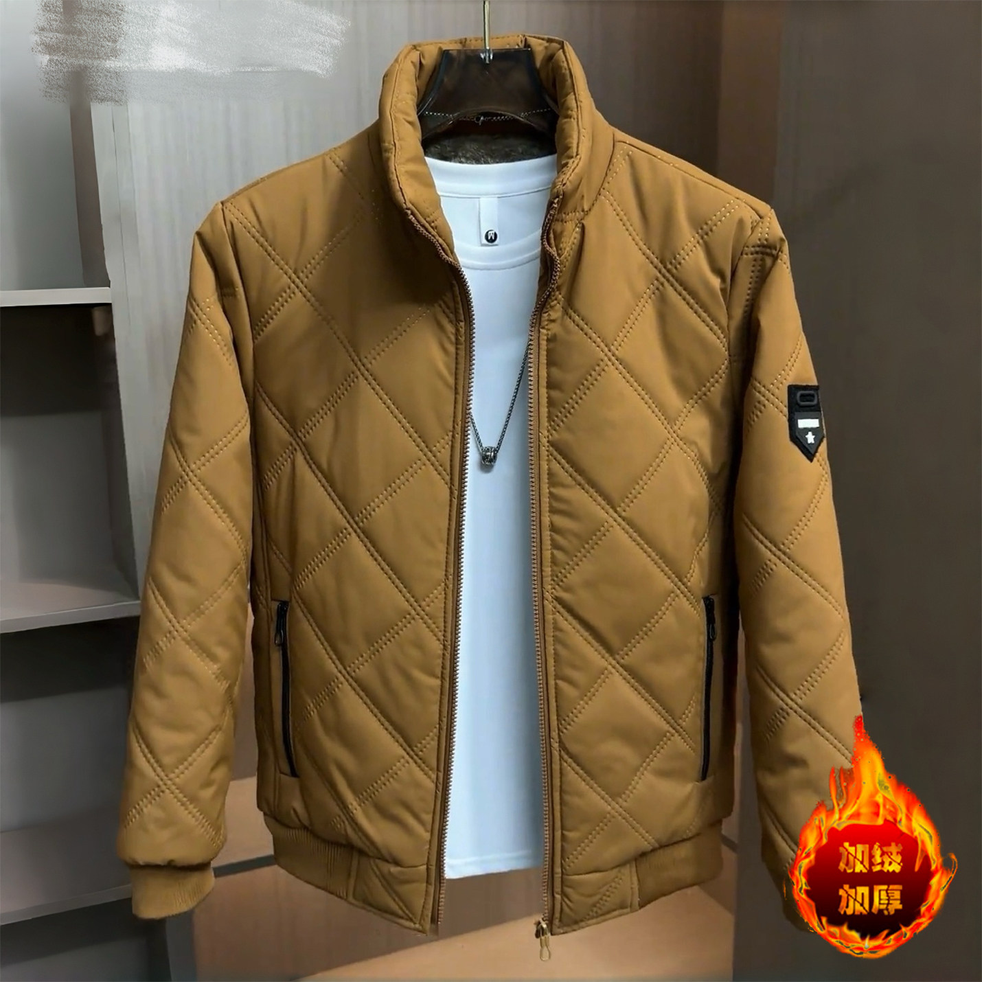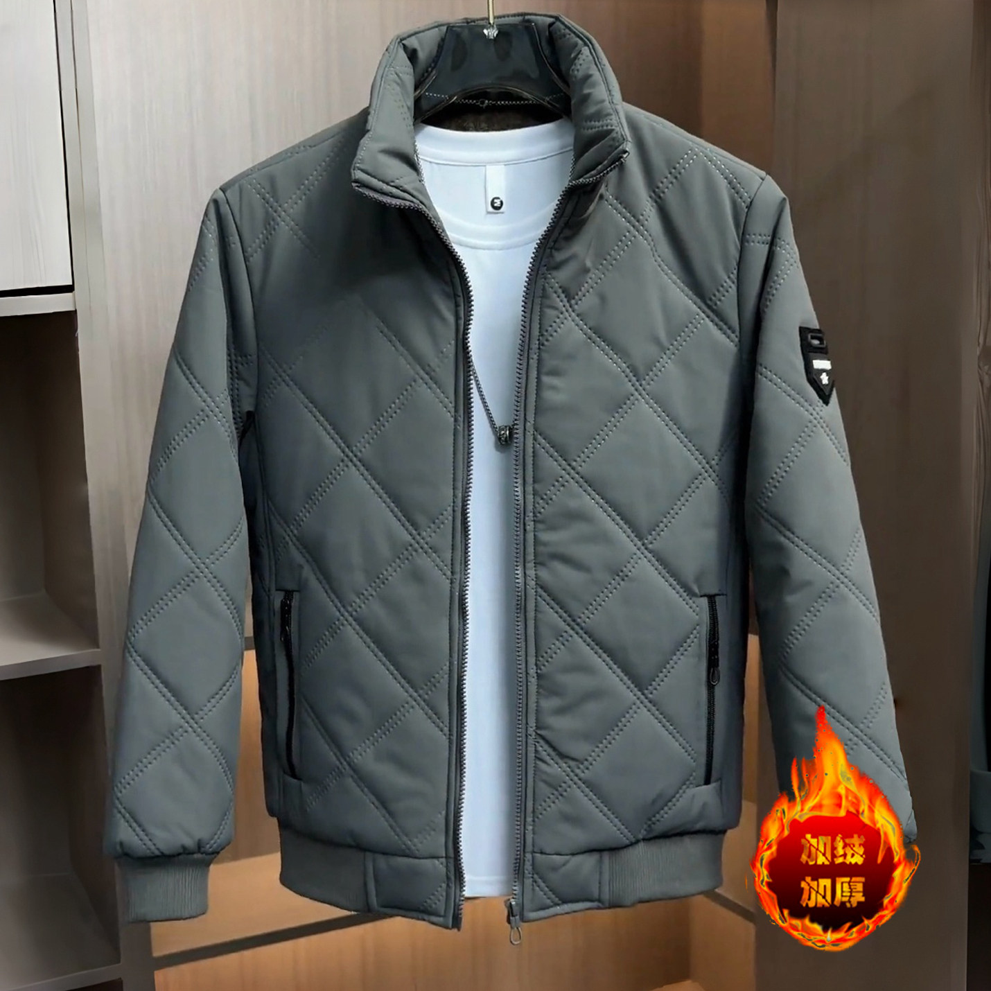 2025秋冬新款男士加绒夹克韩版百搭冬款休闲棉衣外套男潮流上衣男