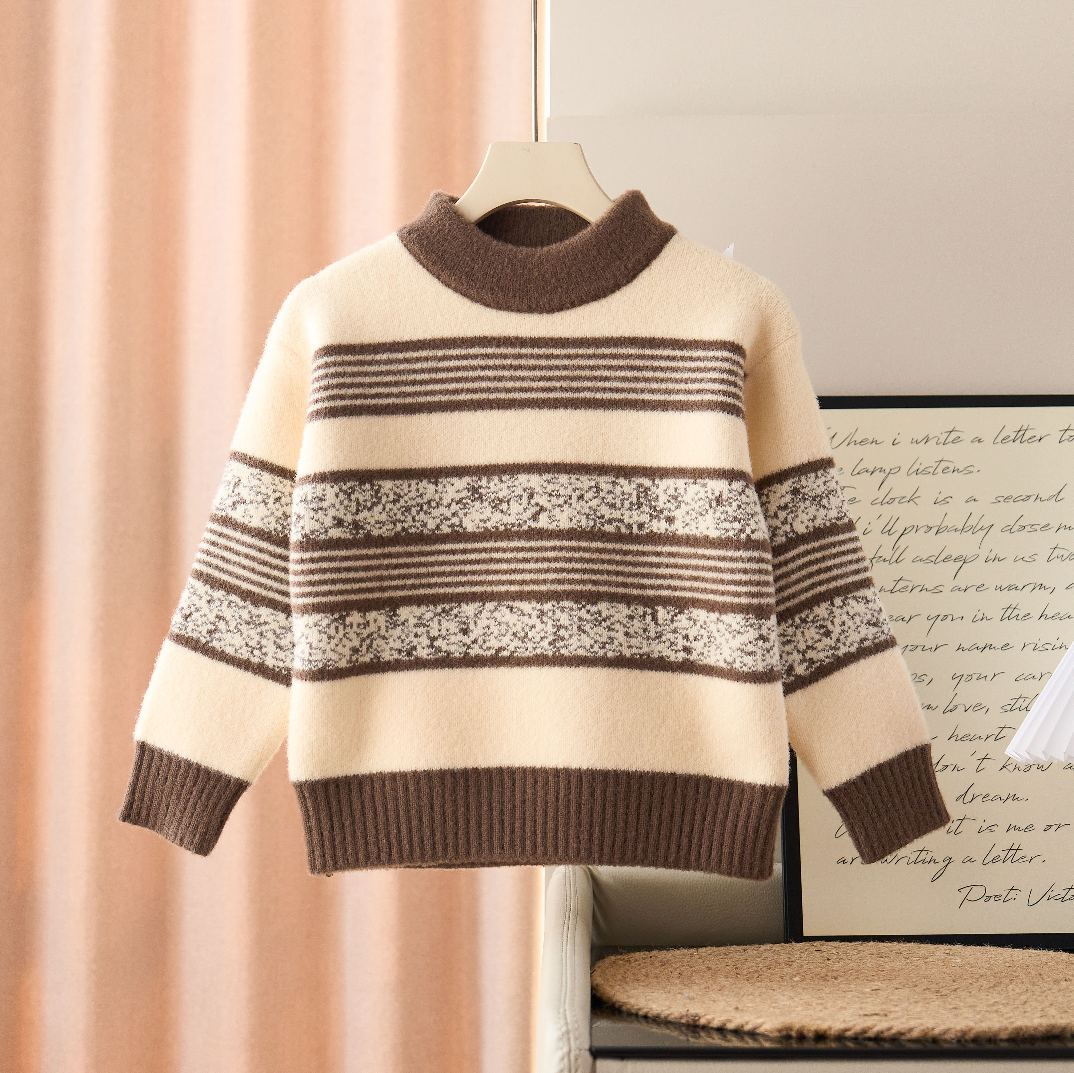 男童圆领上新秋冬季针织毛衣套头洋气百搭中大童拼色外穿上衣毛衣