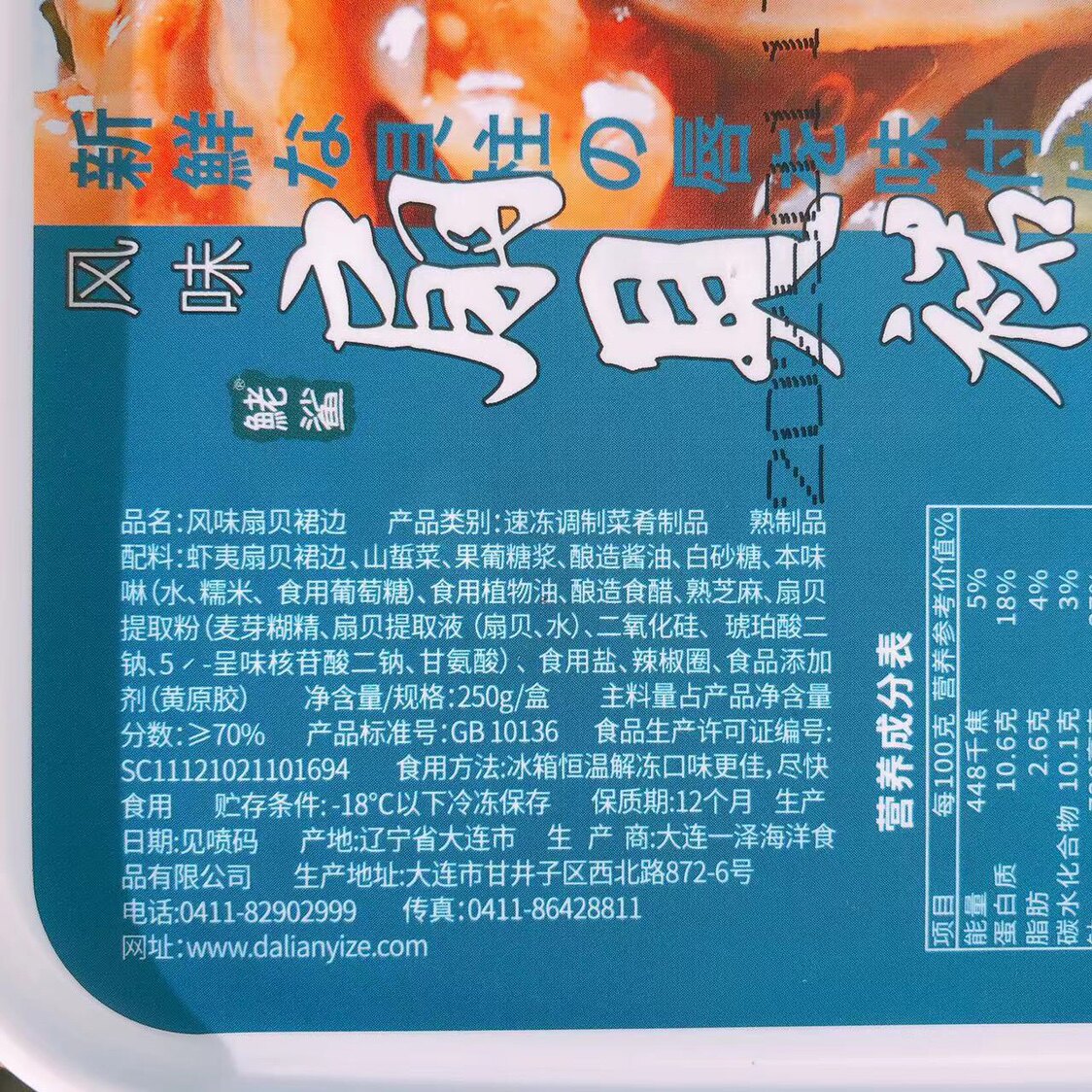 一泽风味扇贝裙边250g组合日式料理寿司餐饮食材即食冷冻海鲜熟食