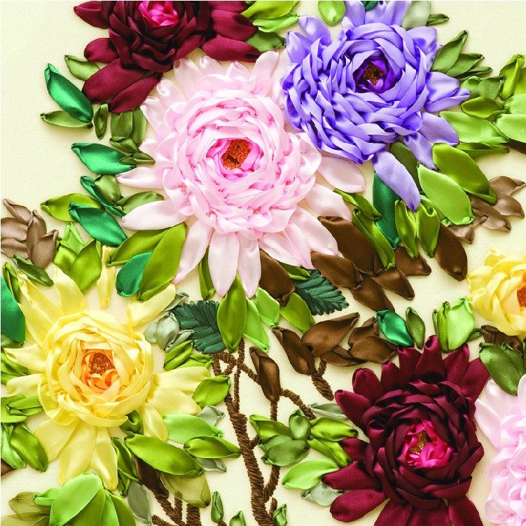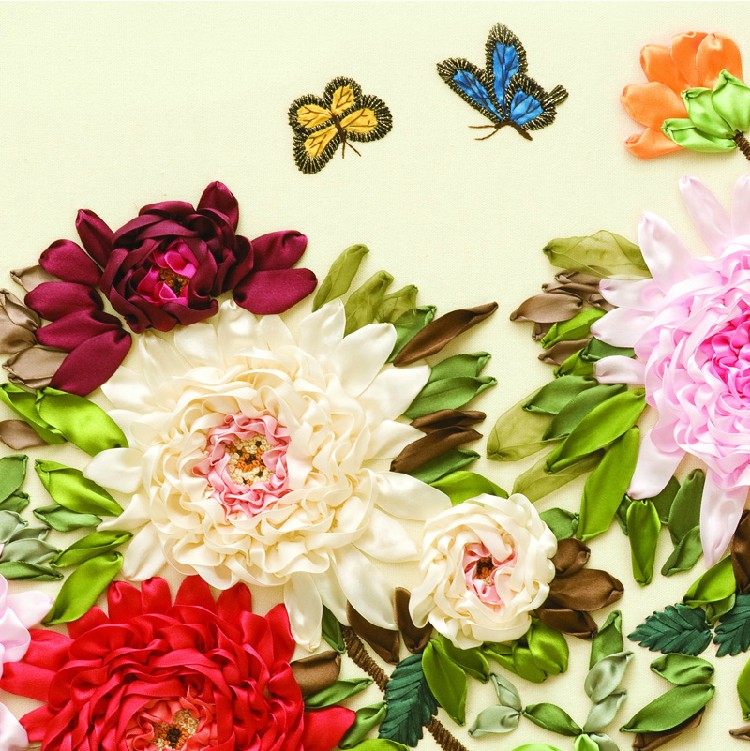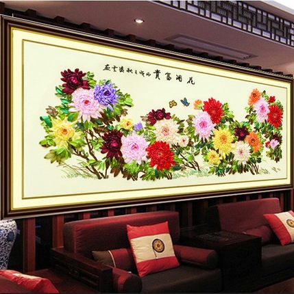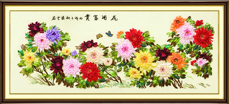 新款diy丝带绣客厅大幅挂画花开富贵米黄中国风牡丹彩带非十字绣