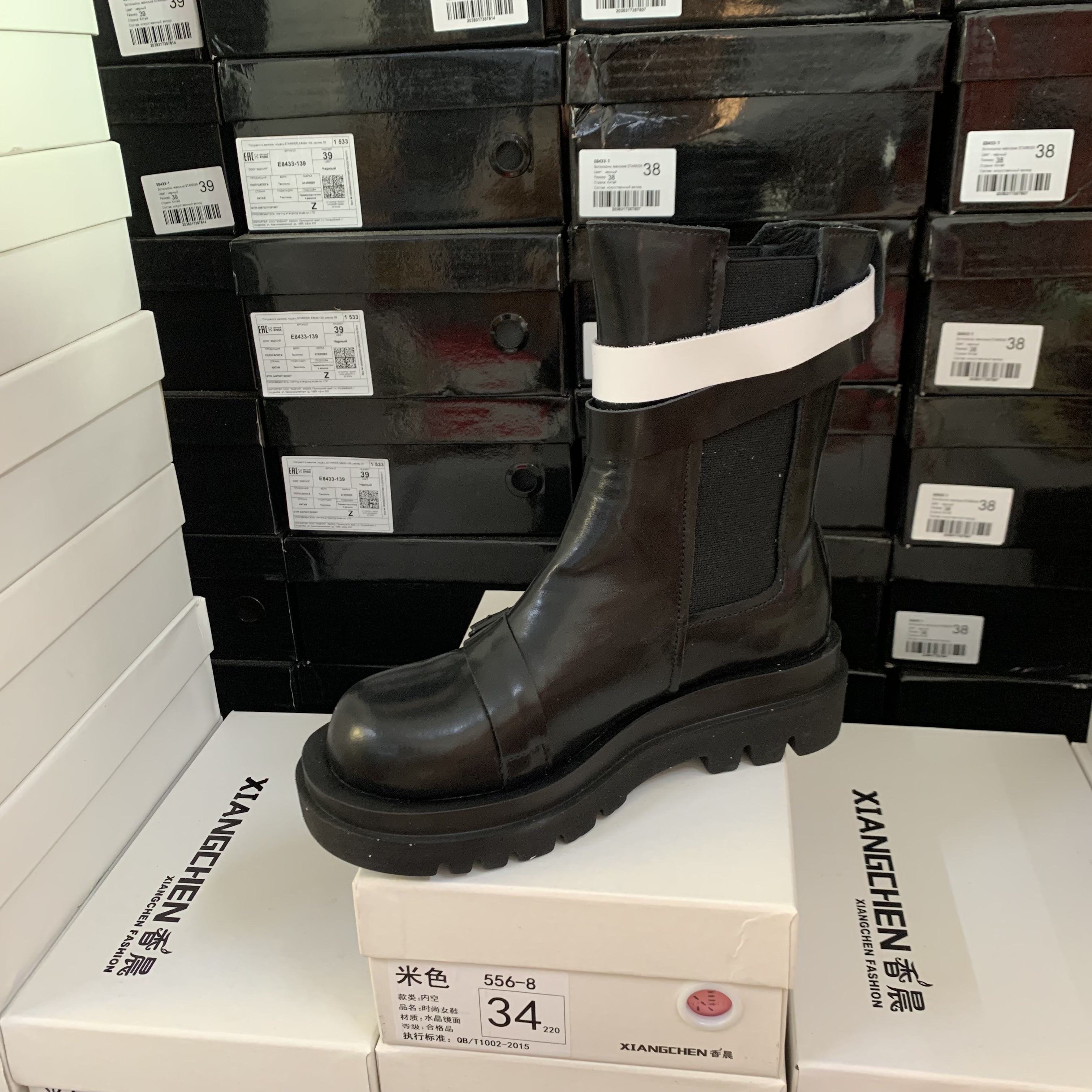 外贸原单出口时尚女鞋圆头厚底马丁靴套筒小众百搭短靴