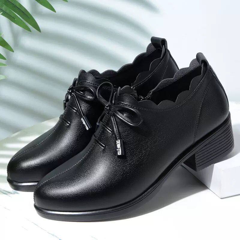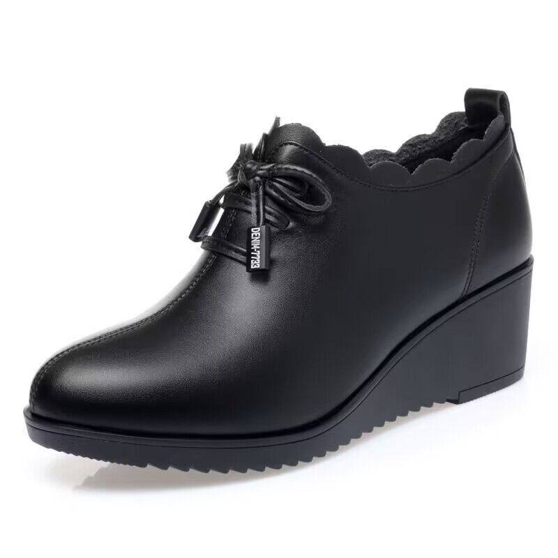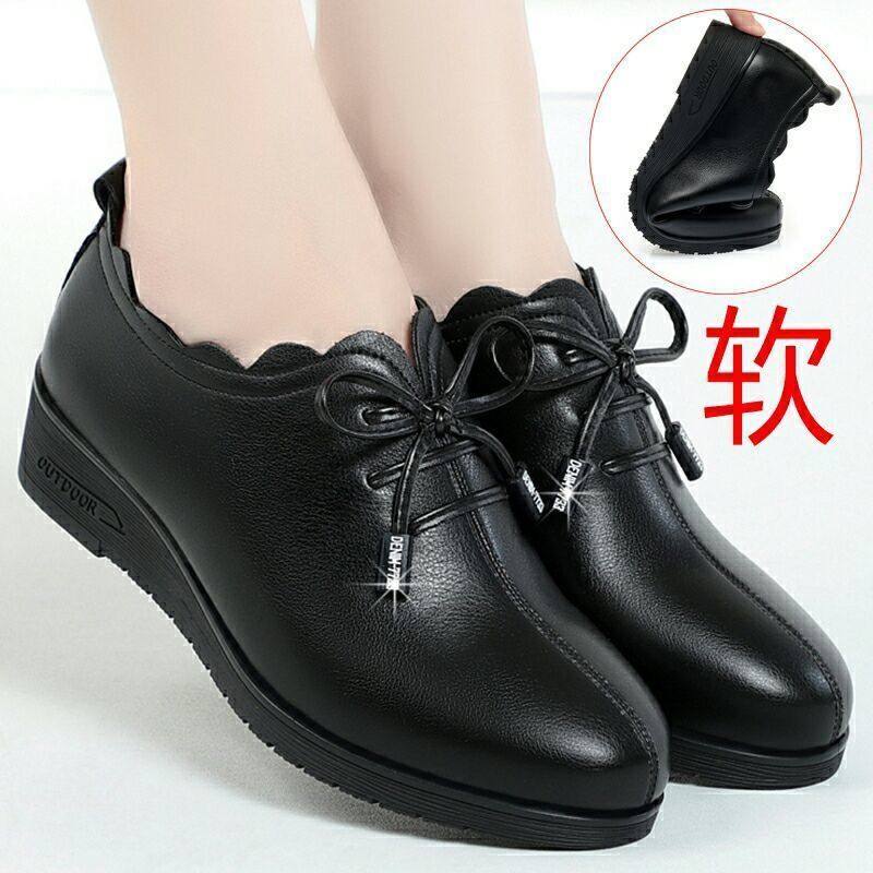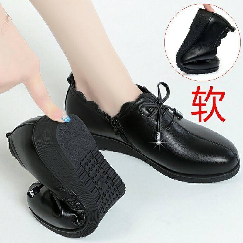 真软皮2025坡跟中老年妈妈鞋新款舒适单鞋中老年女皮鞋软底防滑鞋