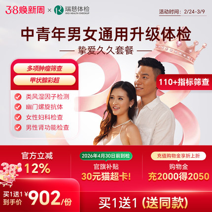 【买1送1】瑞慈体检挚爱久久伴侣夫妻情侣双人男女HPV前列腺套餐