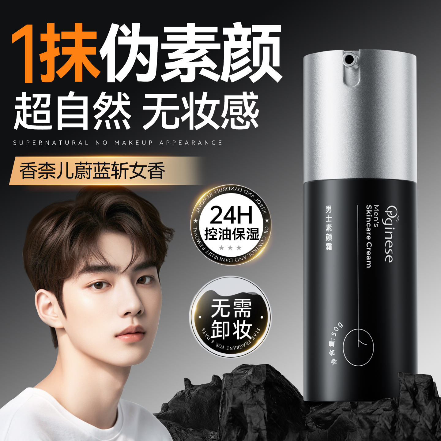 男士素颜霜BB霜遮痘印遮瑕膏粉底液修颜自然不假白防汗化妆品专用