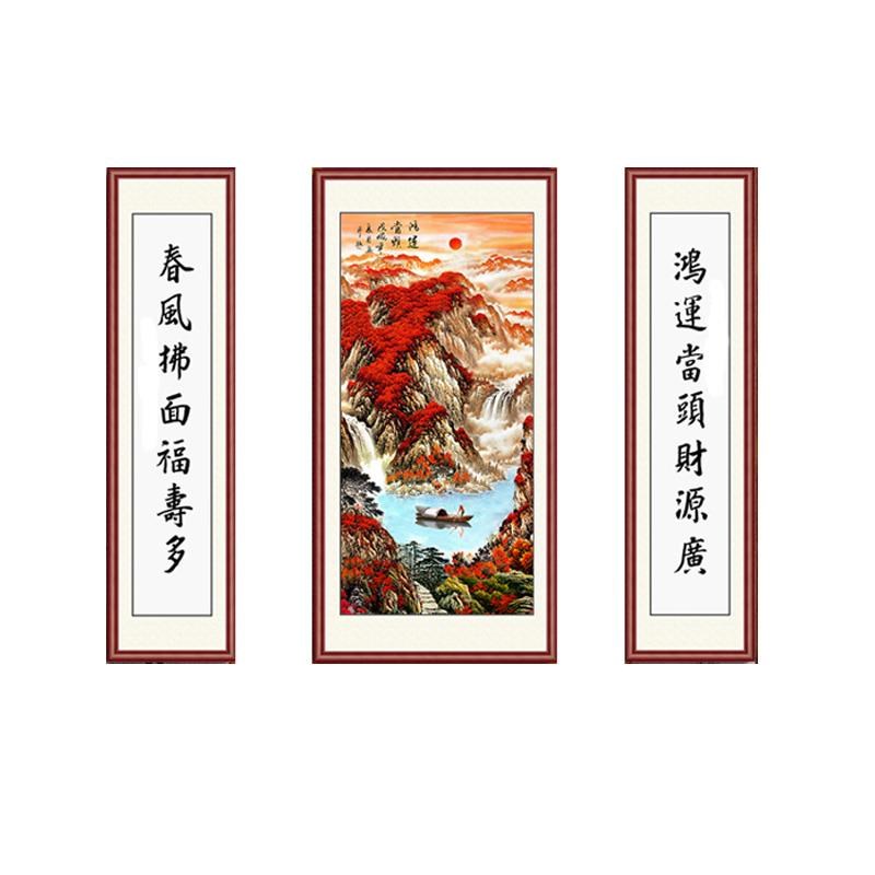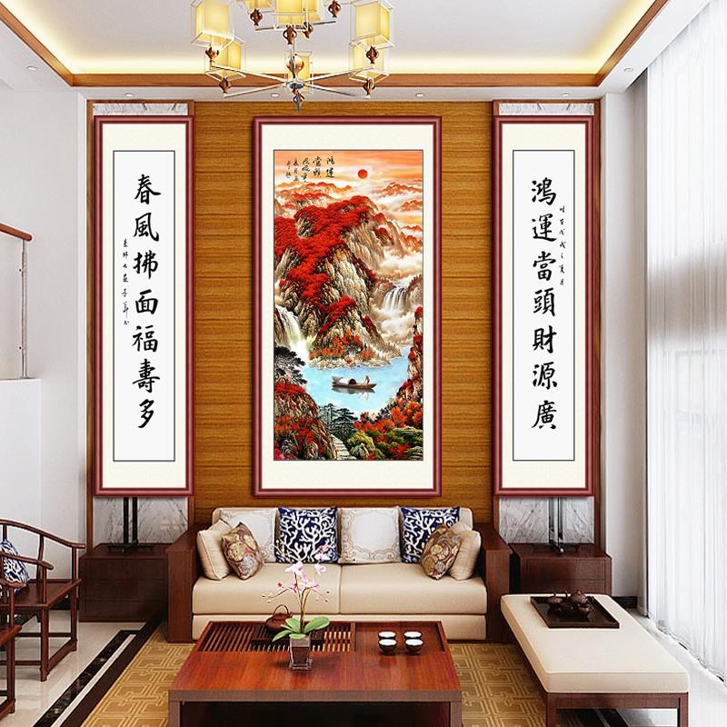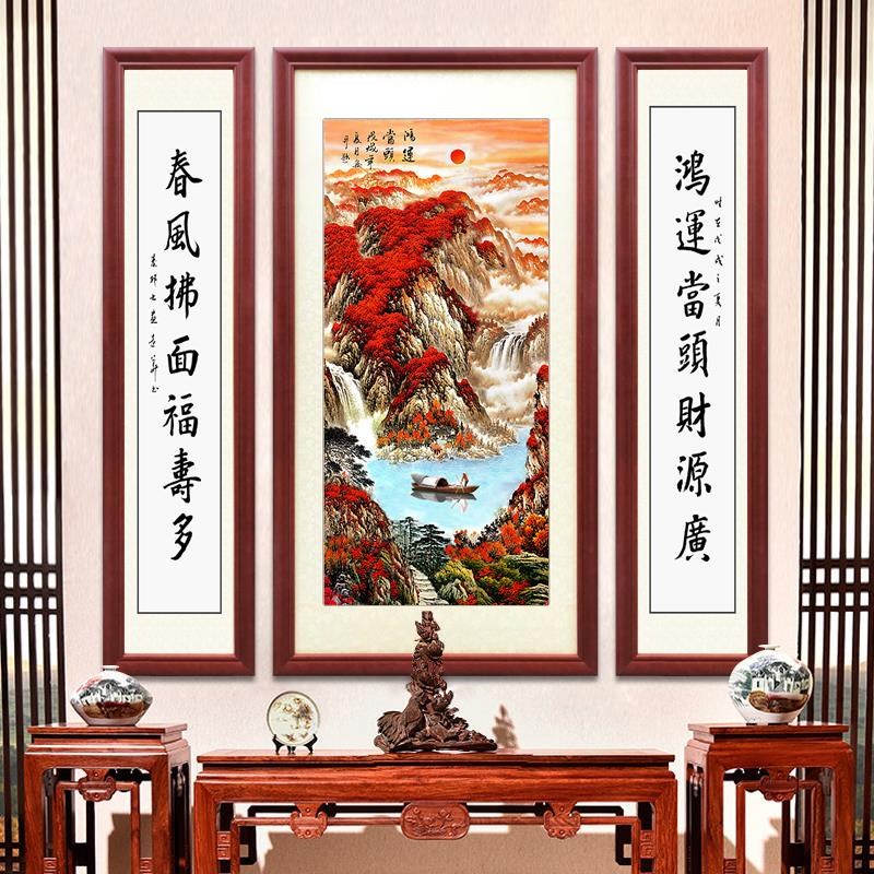 5D钻石画2023k新中式客厅山水中堂画贴钻十字绣满钻鸿运当头钻石
