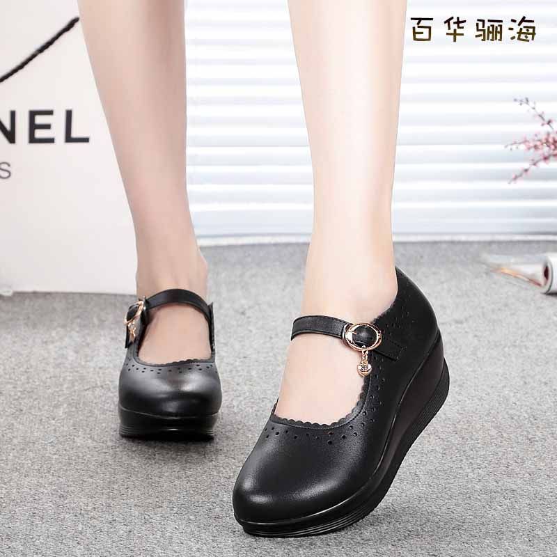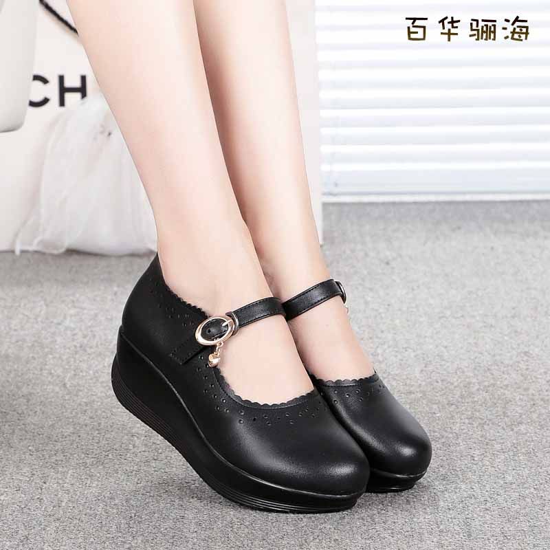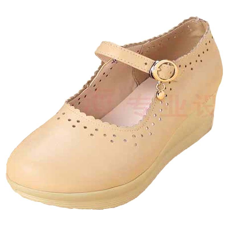 圆头护士鞋浅口坡跟休闲风厚底