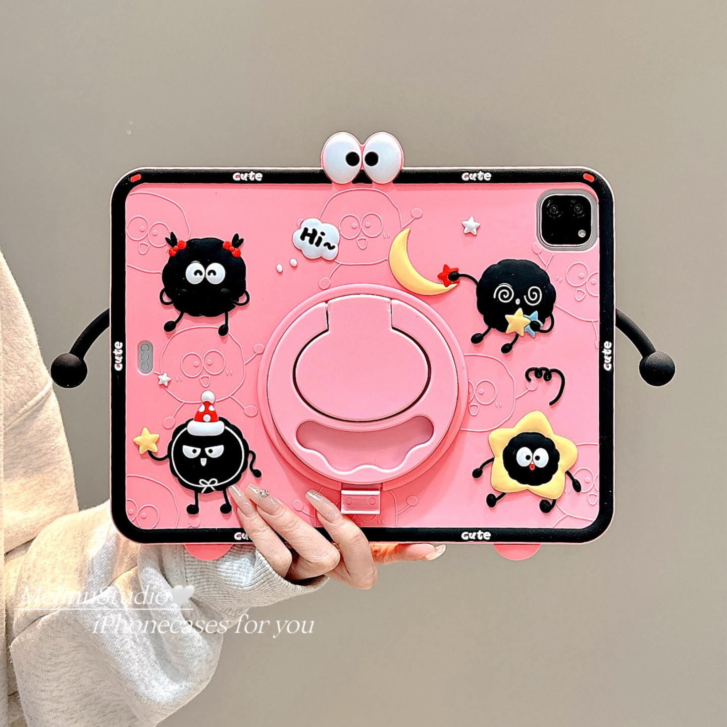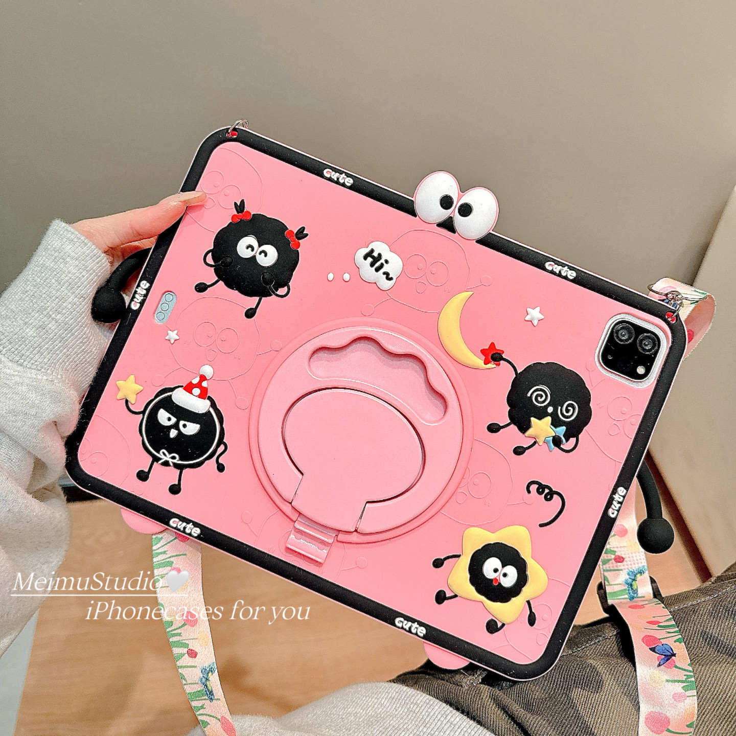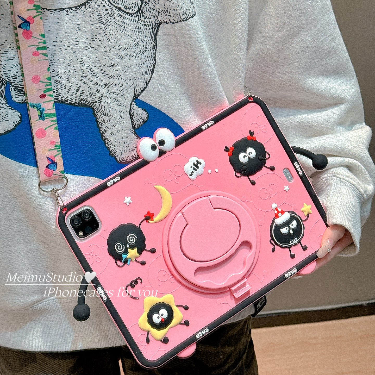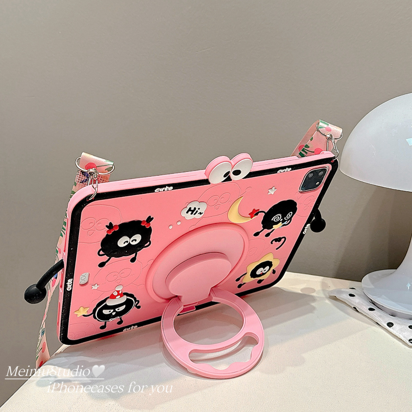 美牧少女粉小煤球带挂绳适用ipad10代360°旋转支架保护壳air6/5/7新款女pro2024硅胶11英寸9.7/10.2平板套