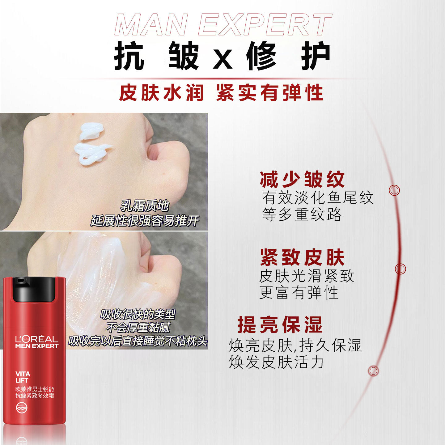 欧莱雅男士锐能抗皱紧致多效霜 男士乳液面霜护肤品补水保湿抗老