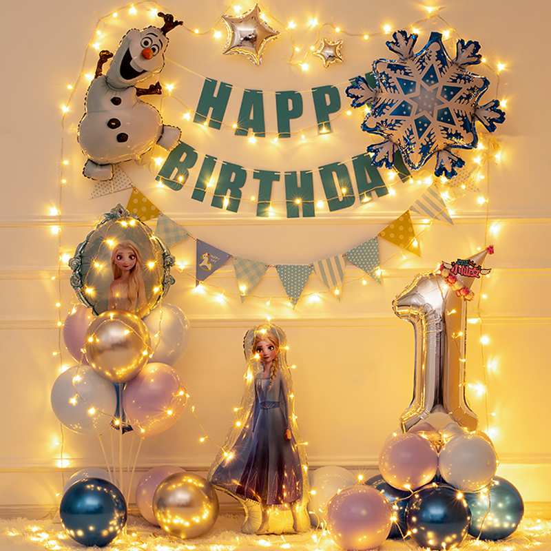 儿童公主冰雪奇缘主题3周岁生日装饰气球场景布置背景墙派对女孩1
