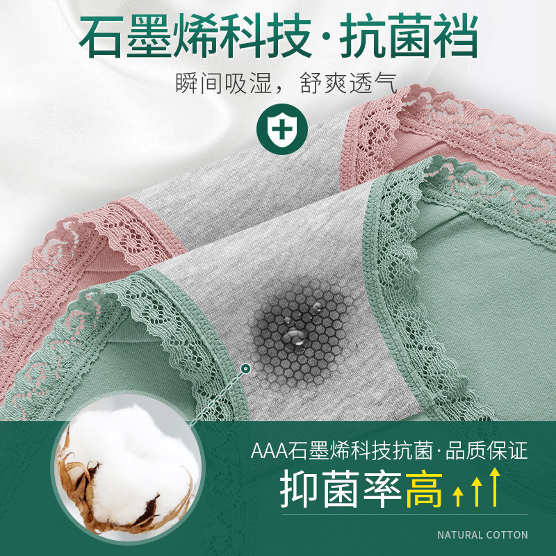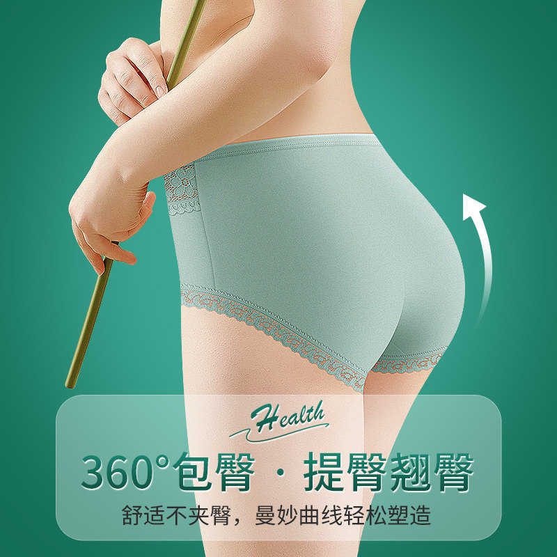 纯棉中腰内裤女全棉抗菌收小腹提臀无痕蕾丝女生女士短裤夏季薄款