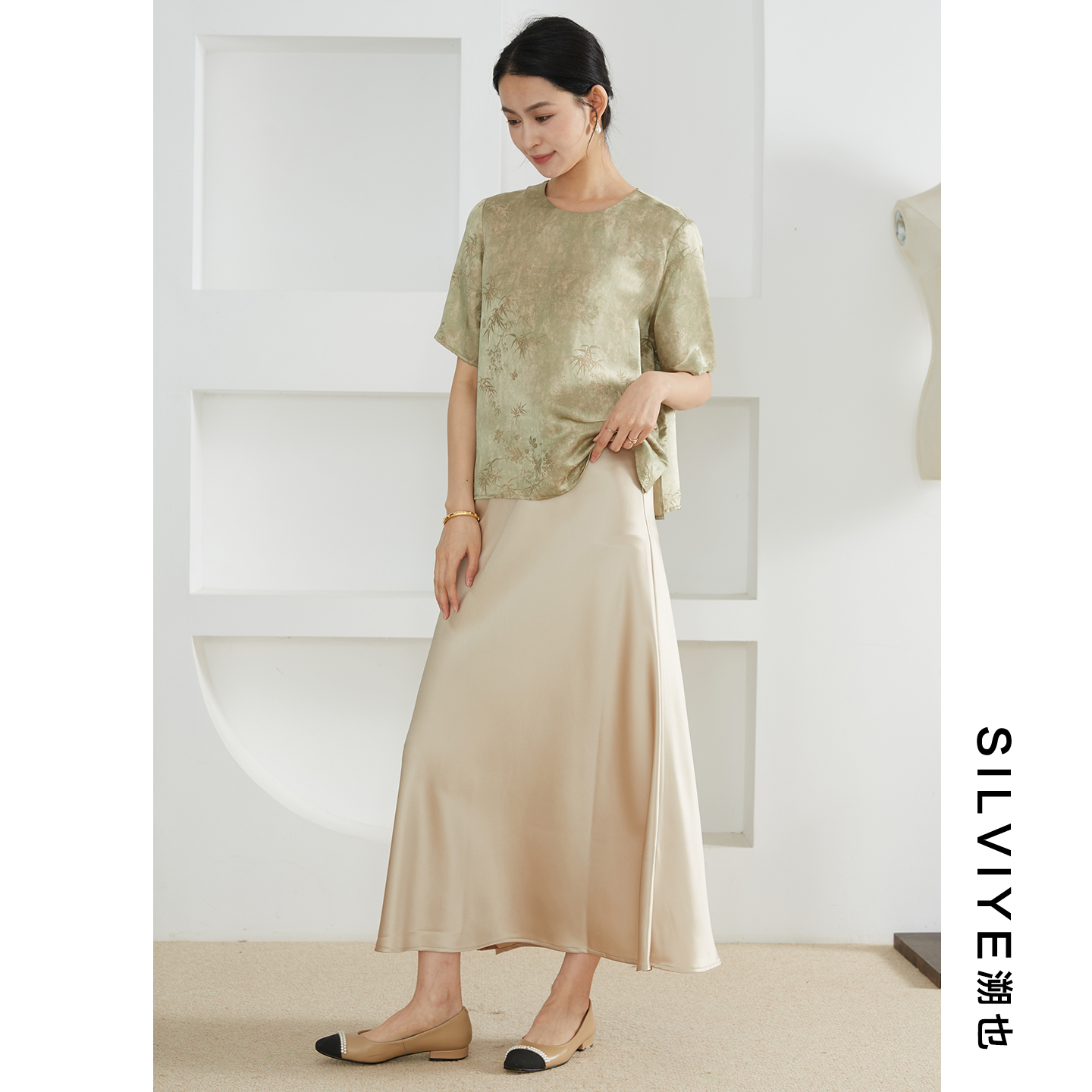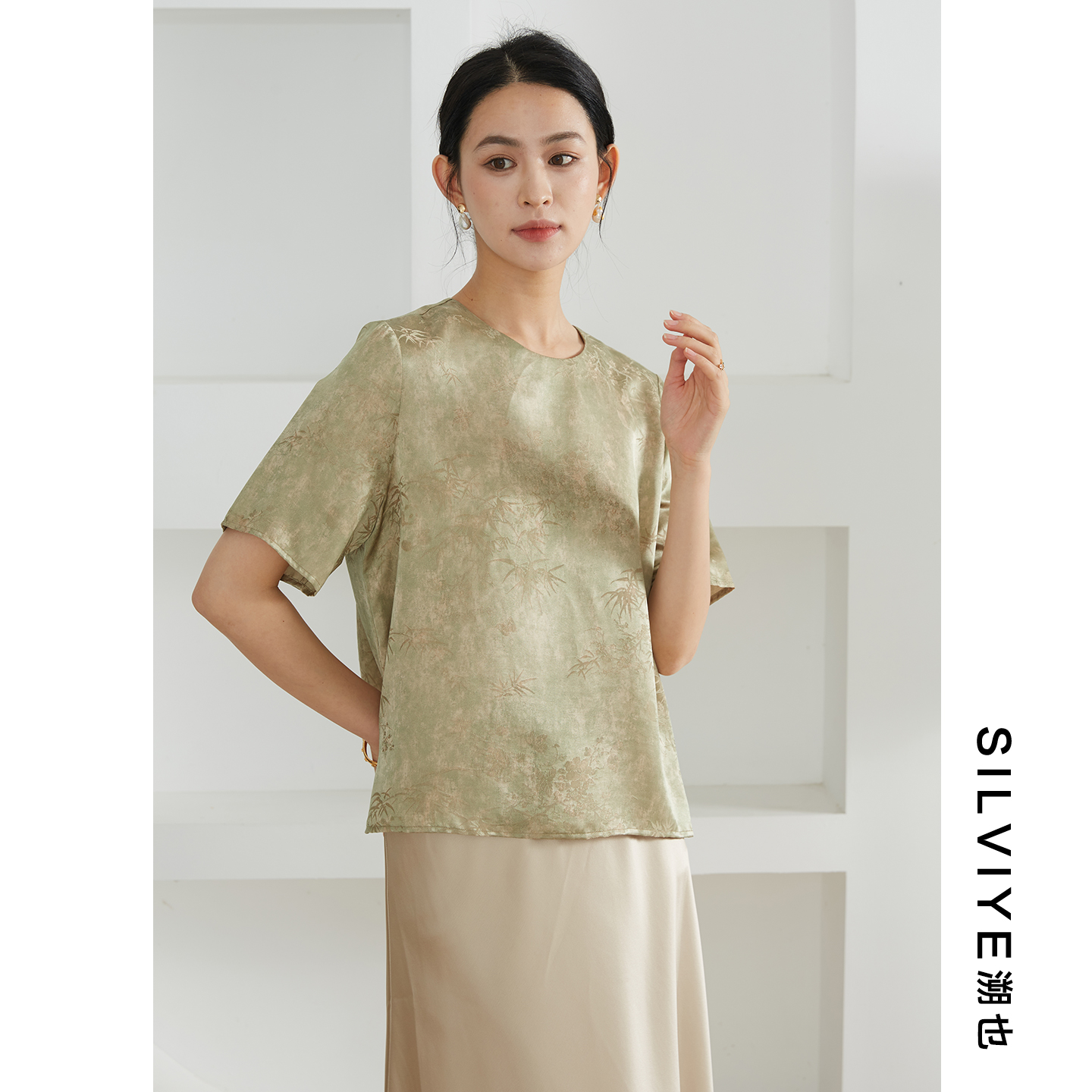 SILVIYE/溯也新中式真丝提花T恤女桑蚕丝短袖上衣宽松显瘦小衫夏