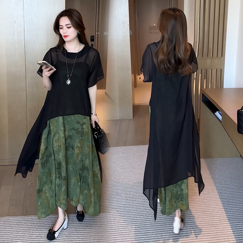 流行漂亮韩系穿搭一整套装长裙黑色吊带连衣裙子女春夏2025年新款
