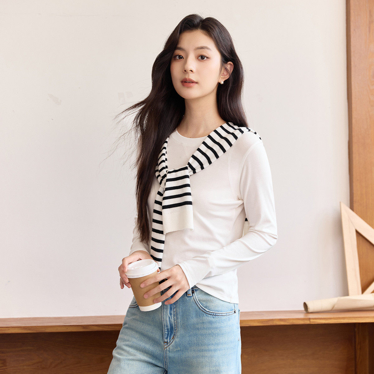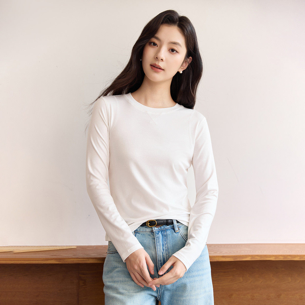 茵曼2026春季新款莱赛尔长袖t恤女正肩休闲修身显瘦上衣打底衫