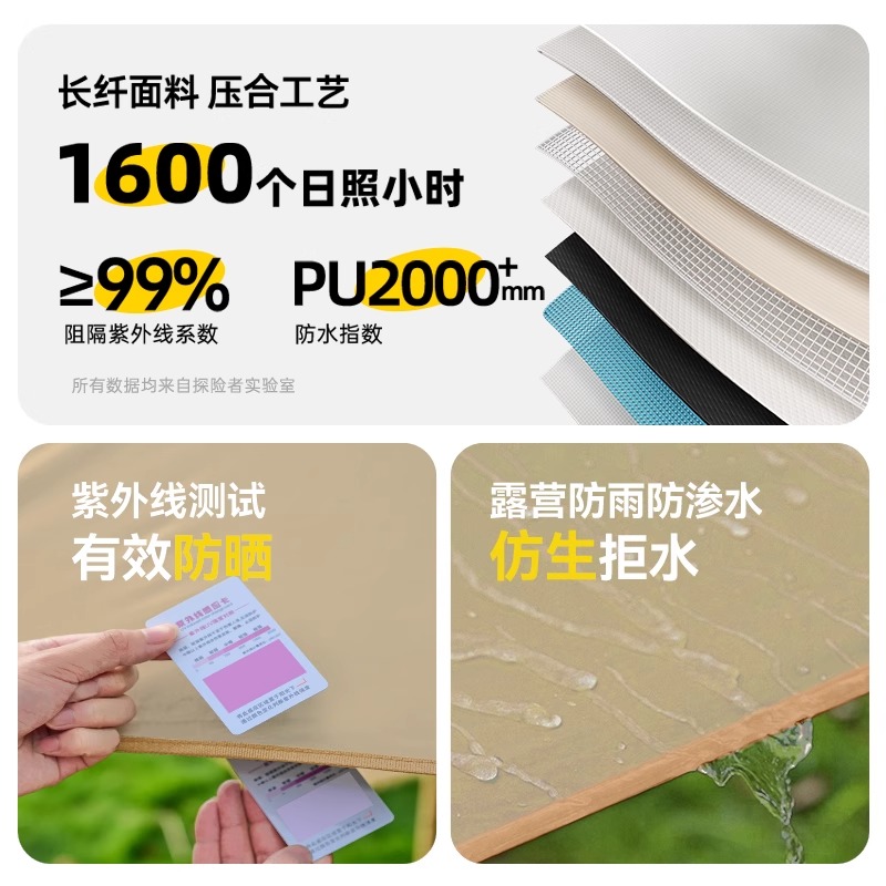探险者黑胶天幕帐篷户外2025新款露营装备全套野营免搭防晒遮阳棚