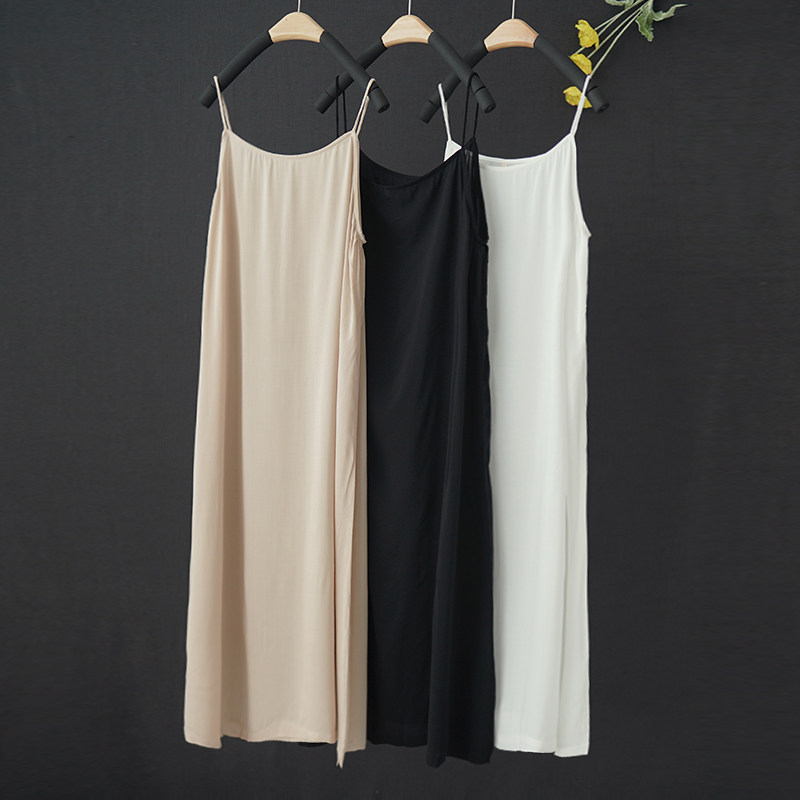 女夏打底背心裙吊带棉文艺宽松中长款大码女薄透气柔软连衣裙外穿