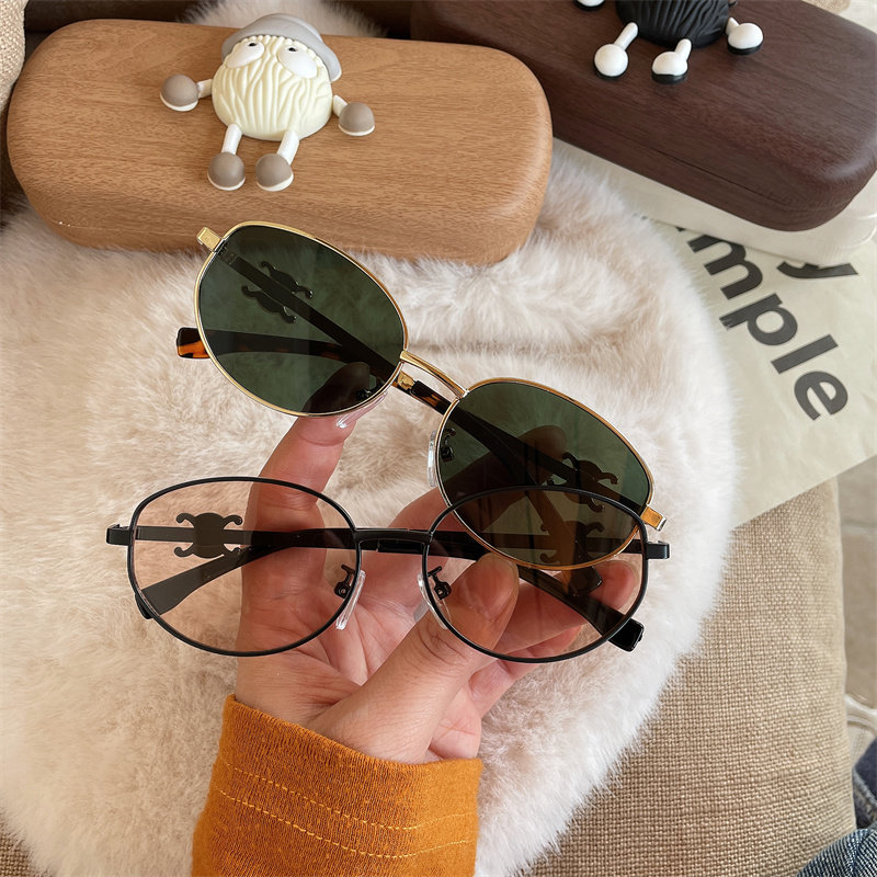 儿童太阳镜男女童眼镜防紫外线老钱风椭圆框男孩墨镜潮流时尚眼镜
