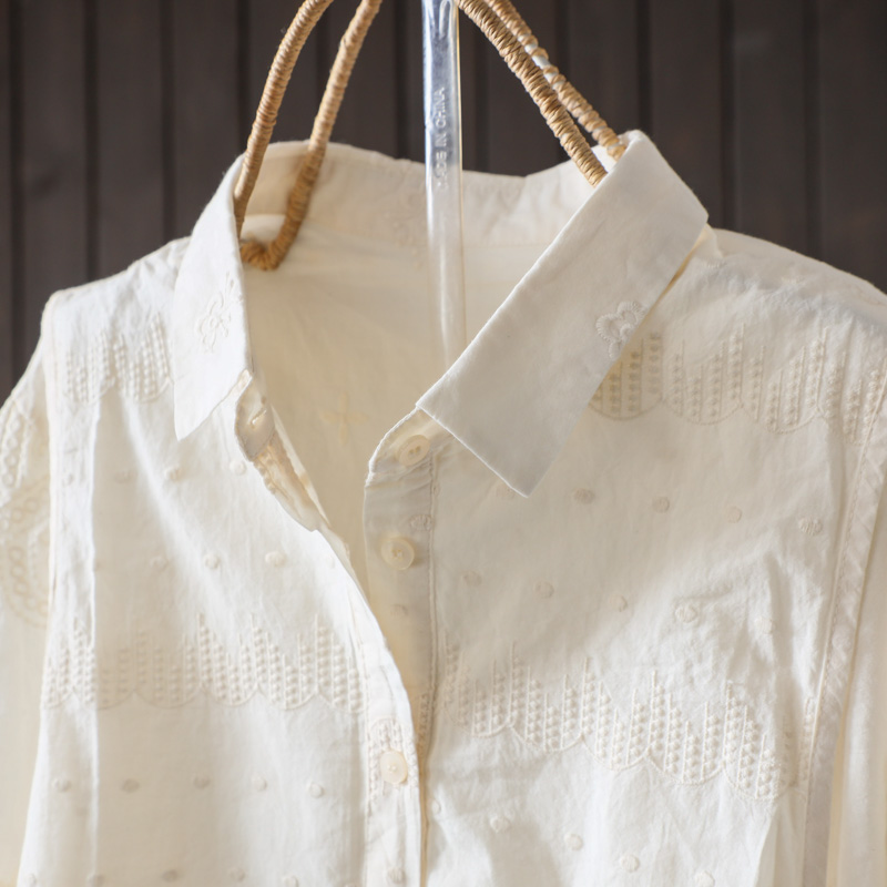 2025春季新款复古翻领单排扣衬衫女休闲宽松系绳显瘦小衫提花上衣