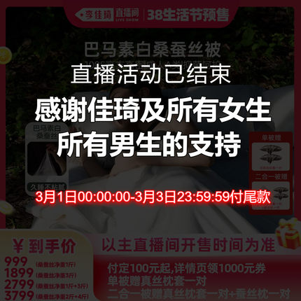 【李佳琦直播间】水星家纺100支长绒棉巴马双宫茧桑蚕丝被