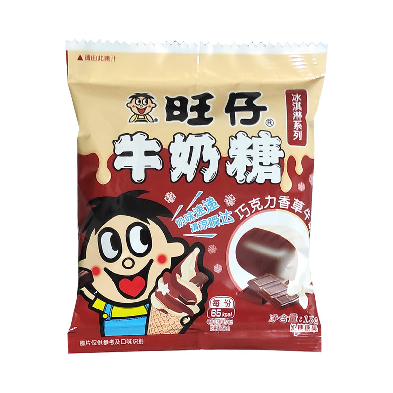 旺仔牛奶糖草莓巧克力香草味15克袋装独立包装儿童休闲糖果零食品