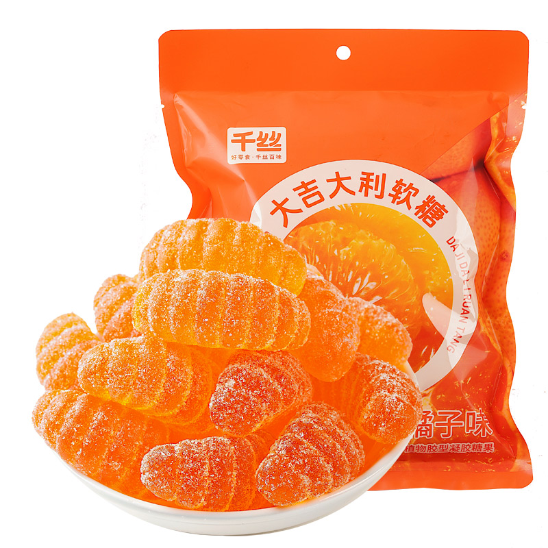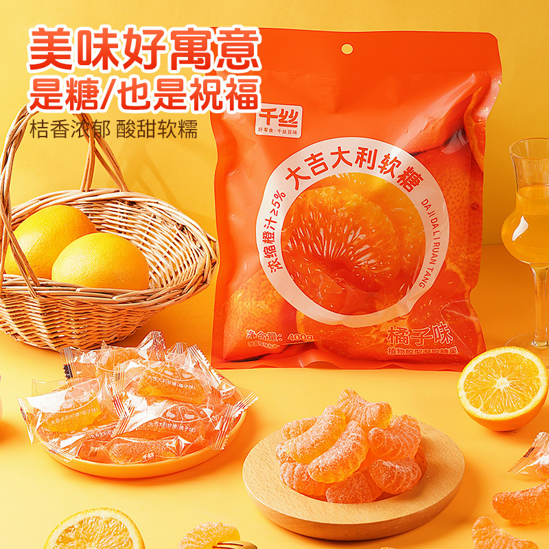 千丝老式桔子味水果味软糖大吉大利年货糖果团购批发小包装袋装