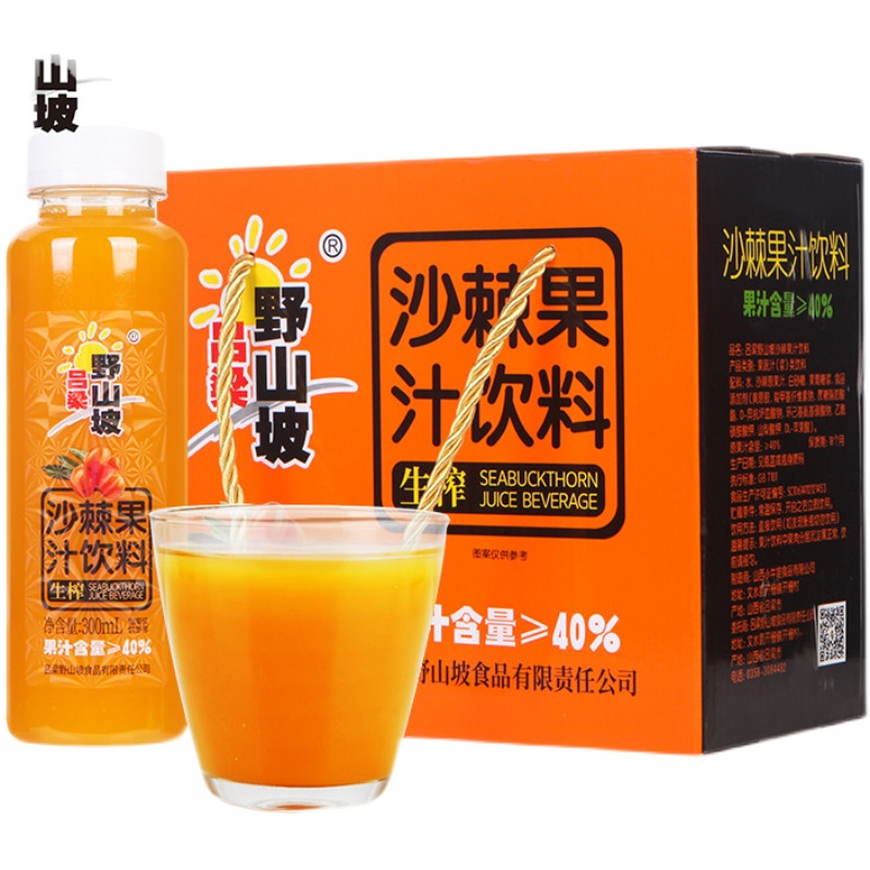 沙棘汁吕梁野山坡300mlx8瓶礼盒装山西特产生榨沙棘果汁饮料整箱