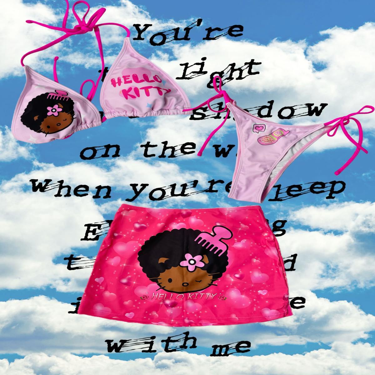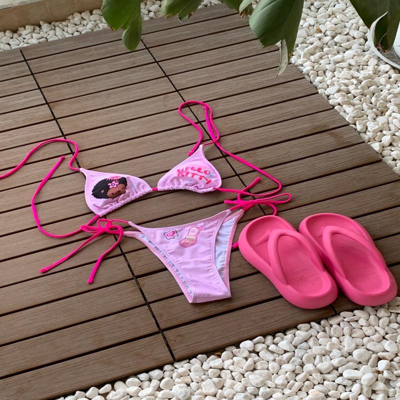 黑皮辣妹lloKitty比基尼小胸聚拢千禧辣妹分体泡温泉泳衣三件套女
