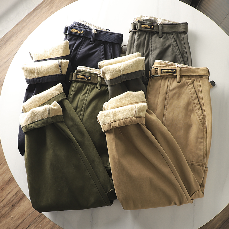 加绒款!阿美咔叽!冬季男士宽松锥形加绒加厚保暖直筒工装休闲裤