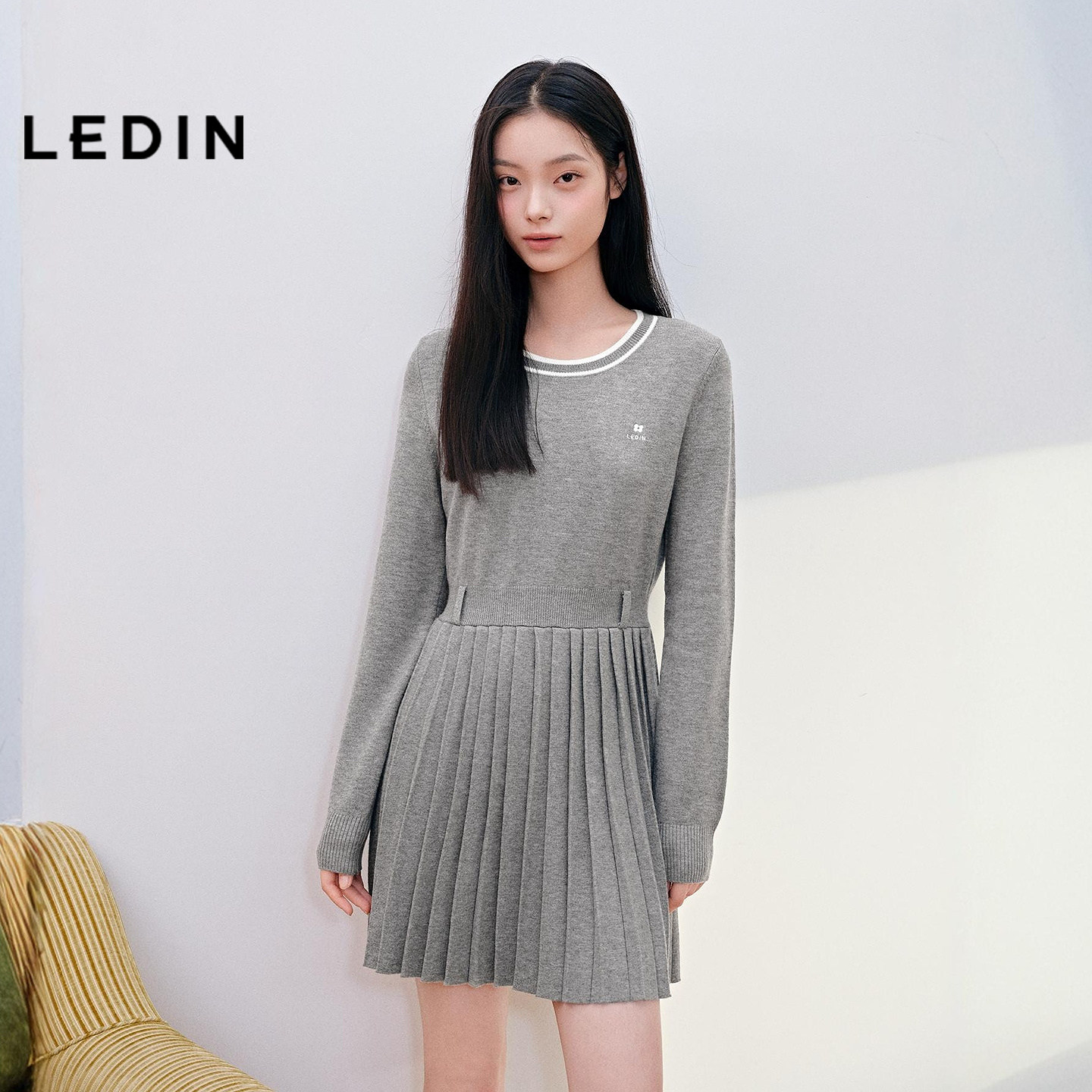 乐町真两件披肩X版型连衣裙女装2026年春季新款精致刺绣针织裙子
