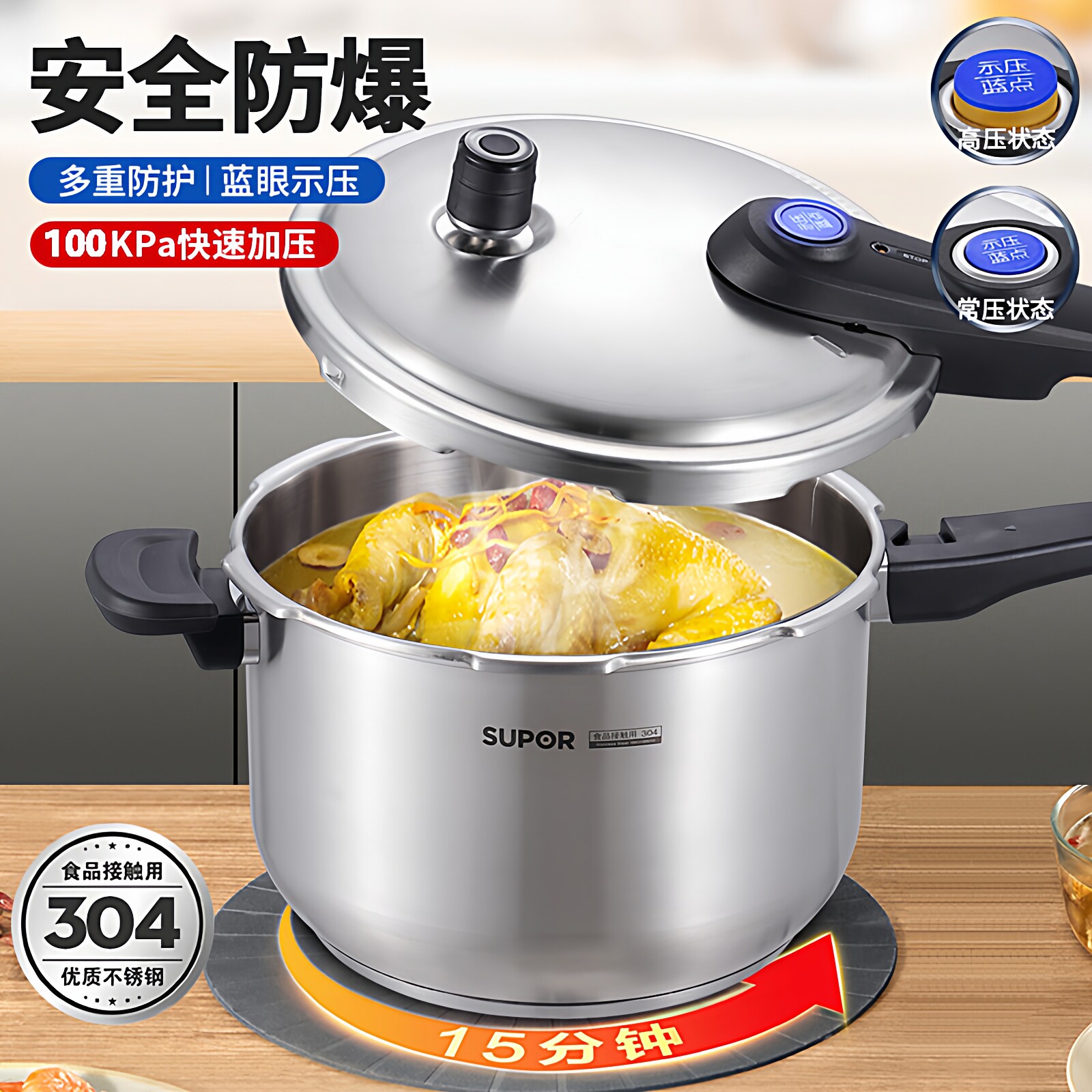 正品苏泊尔蓝眼304不锈钢高压锅家用燃气电磁通用压力锅加厚防爆