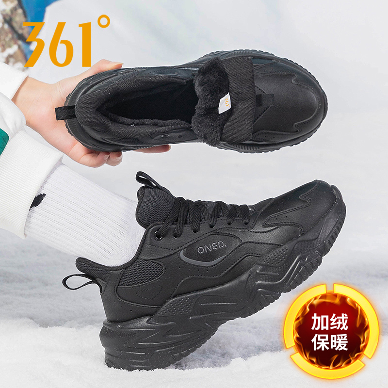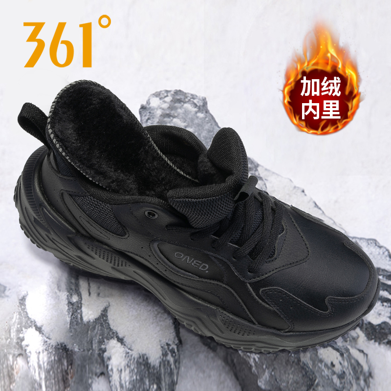 361女鞋加绒加厚棉鞋2025新款品牌防水防滑跑步鞋皮面冬季运动鞋