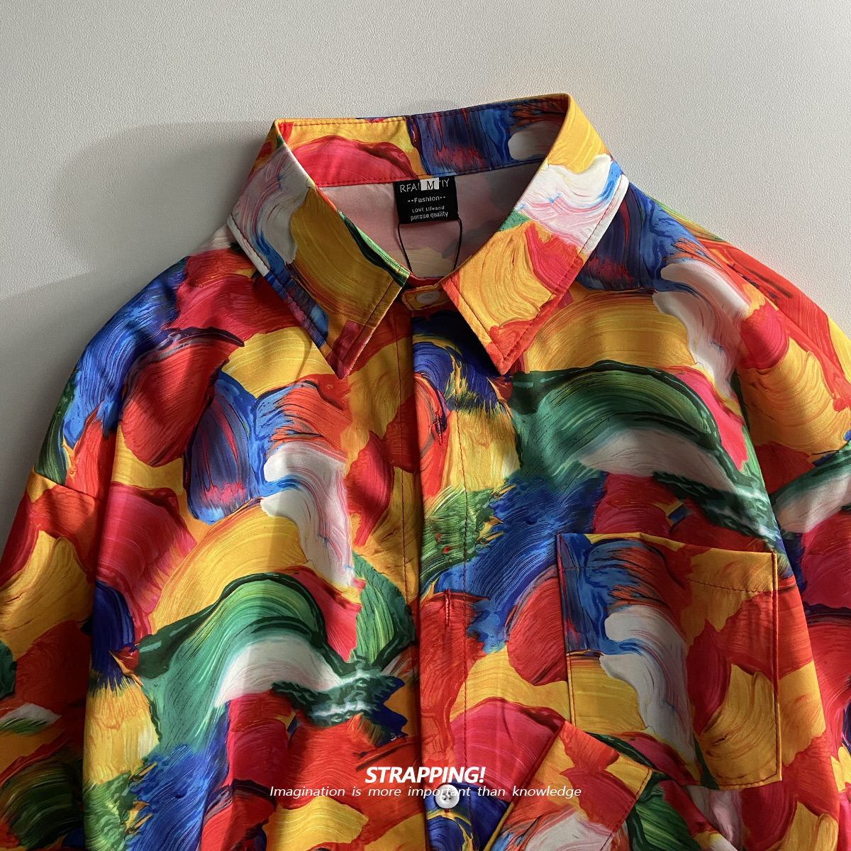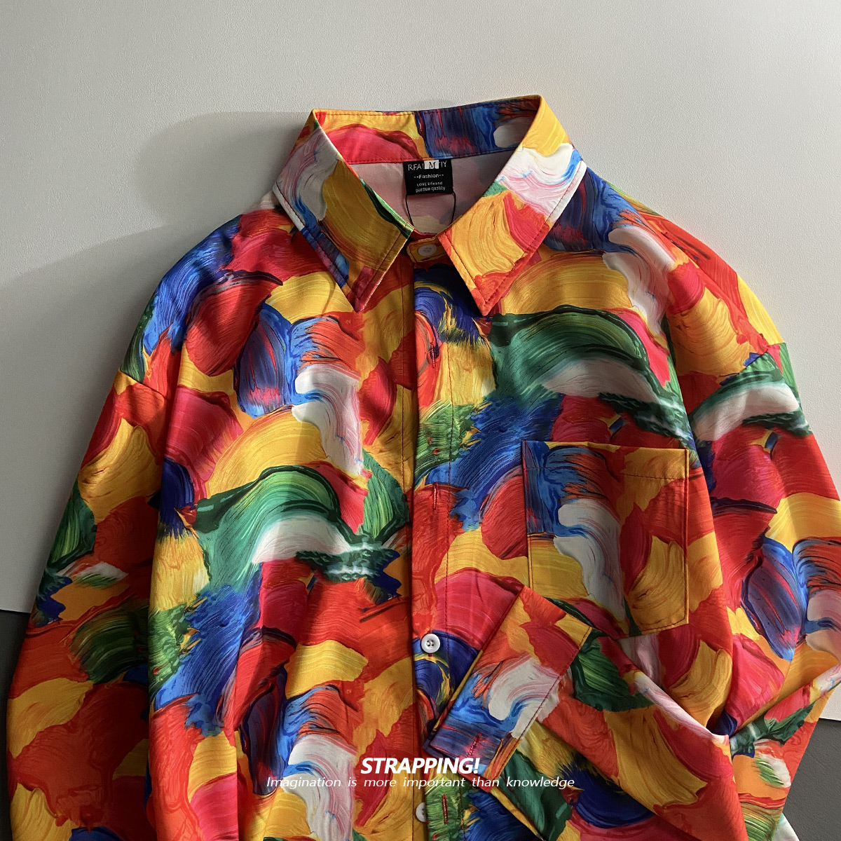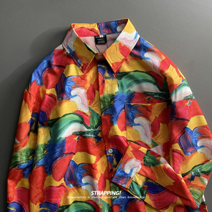 STRAPPING油画撞色涂鸦碎花长袖花衬衫港风复古日系男女痞帅春秋