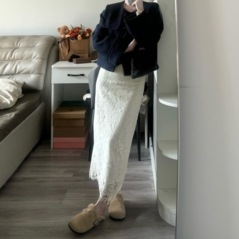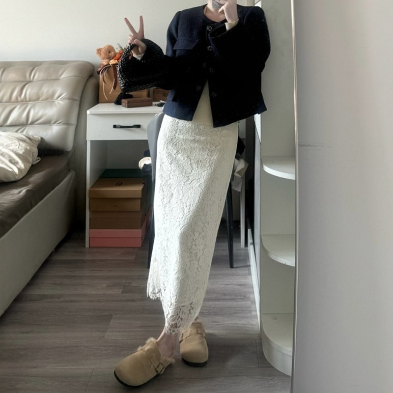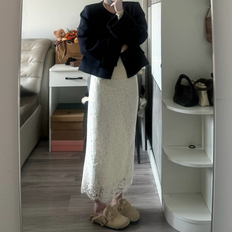 白色蕾丝小香风包臀半身裙女新款气质高级感大码遮肉直筒长款裙子