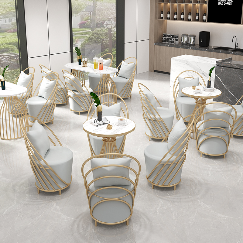 网红美容院沙发服装甜品奶茶店咖啡厅休息区卡座洽谈桌椅茶几组合