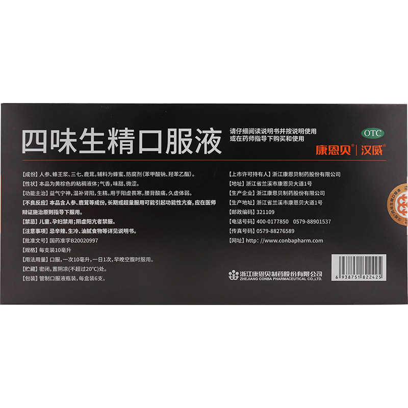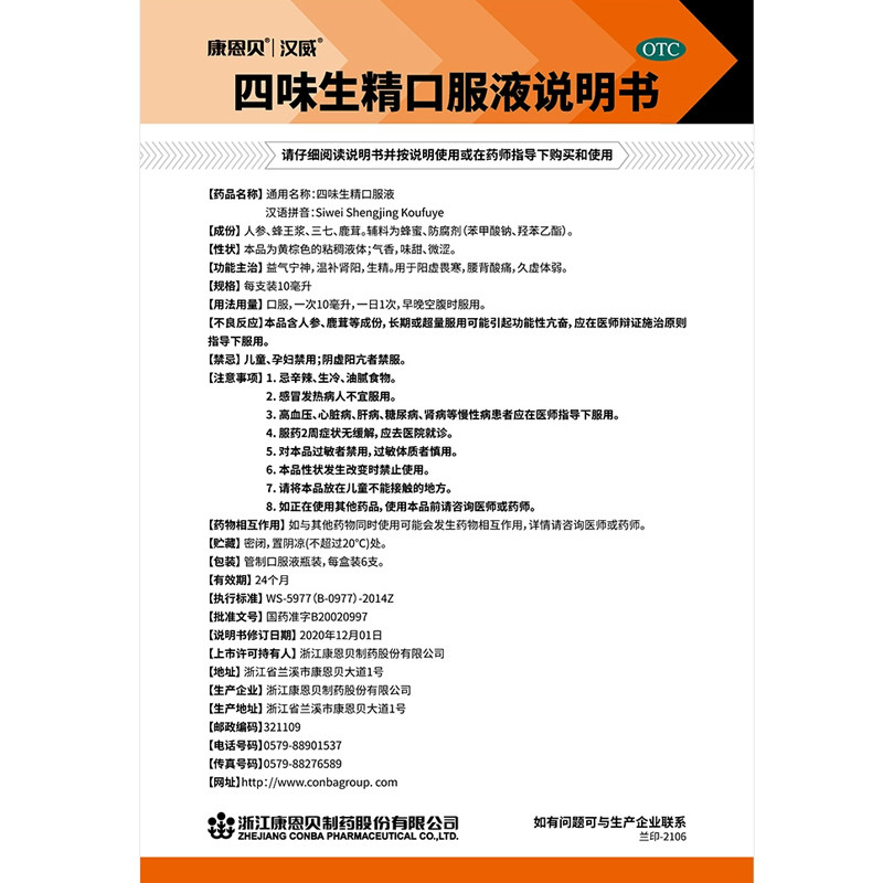 康恩贝 四味生精口服液 10ml*6支益气宁神温补肾阳阳虚体弱畏寒