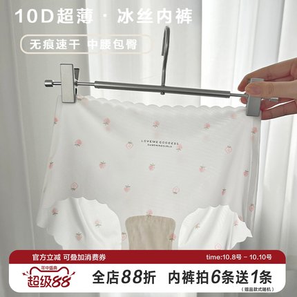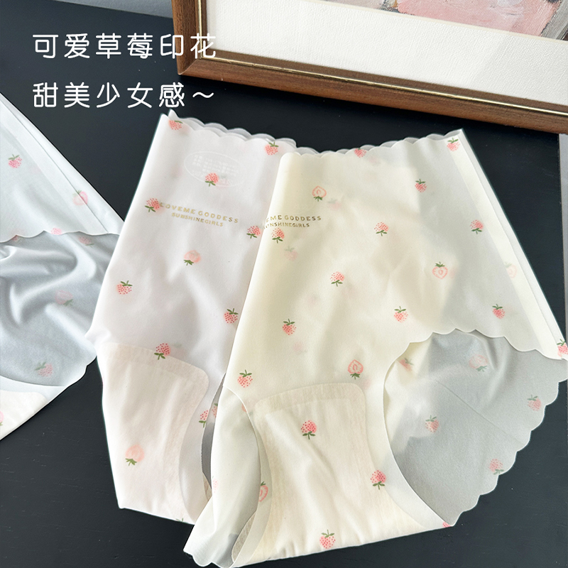 【莓莓甜心】超薄无痕一片式冰丝内裤女中腰大码可爱高弹透气速干