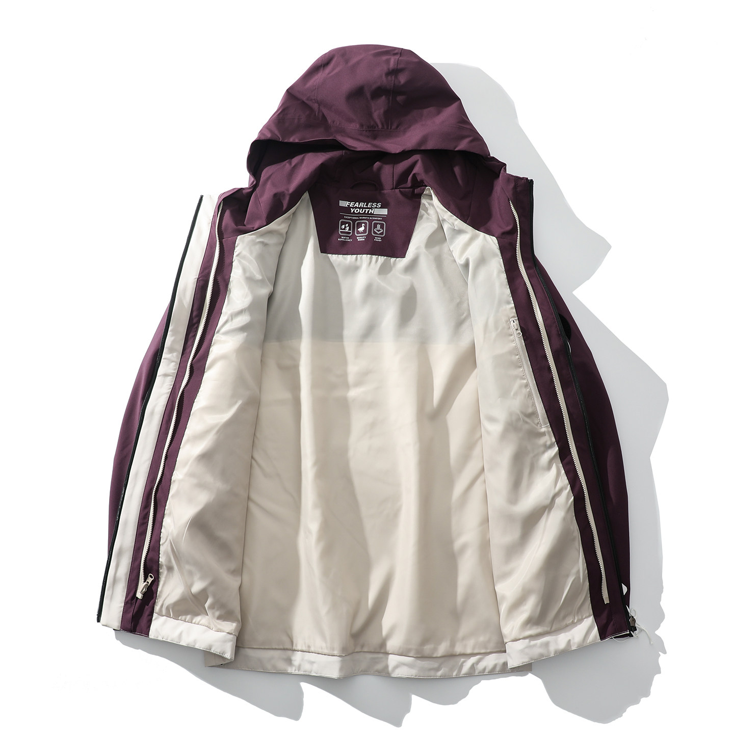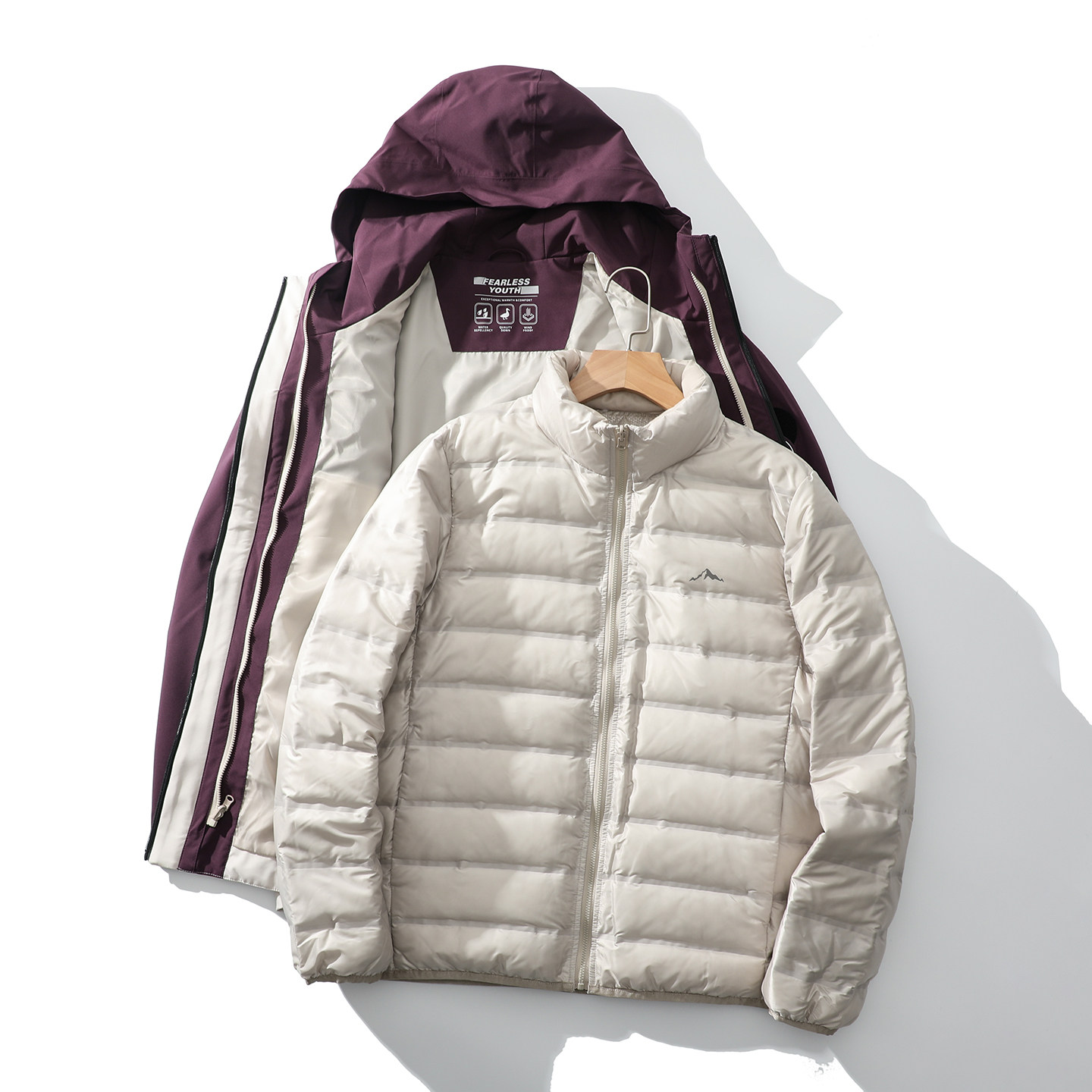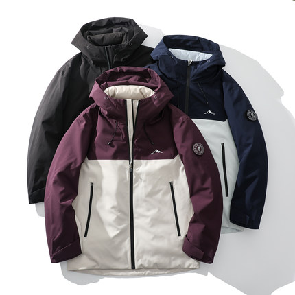 撞色连帽防泼水三合一冲锋羽绒服