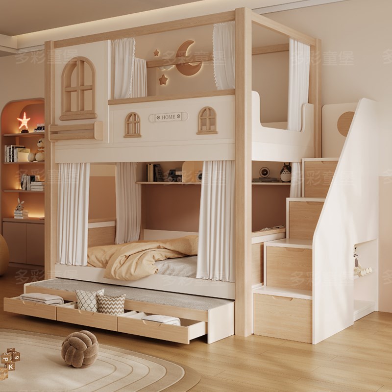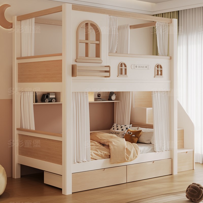 儿童床上下床木床双层床两层高低铺小户型上下同宽加高护栏平行床