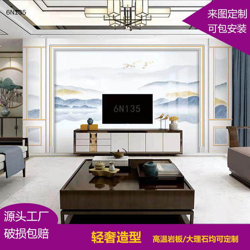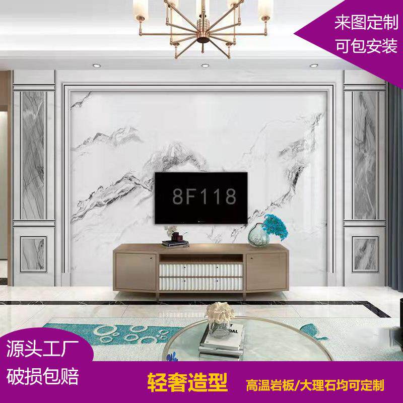 岩板客厅电视背景墙瓷砖微晶石材影视墙现代简约大理石岩板背景墙