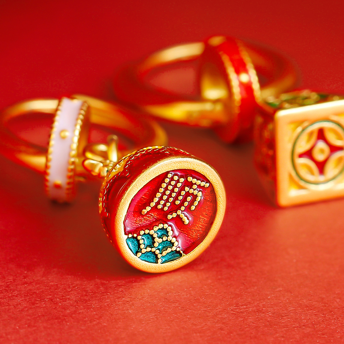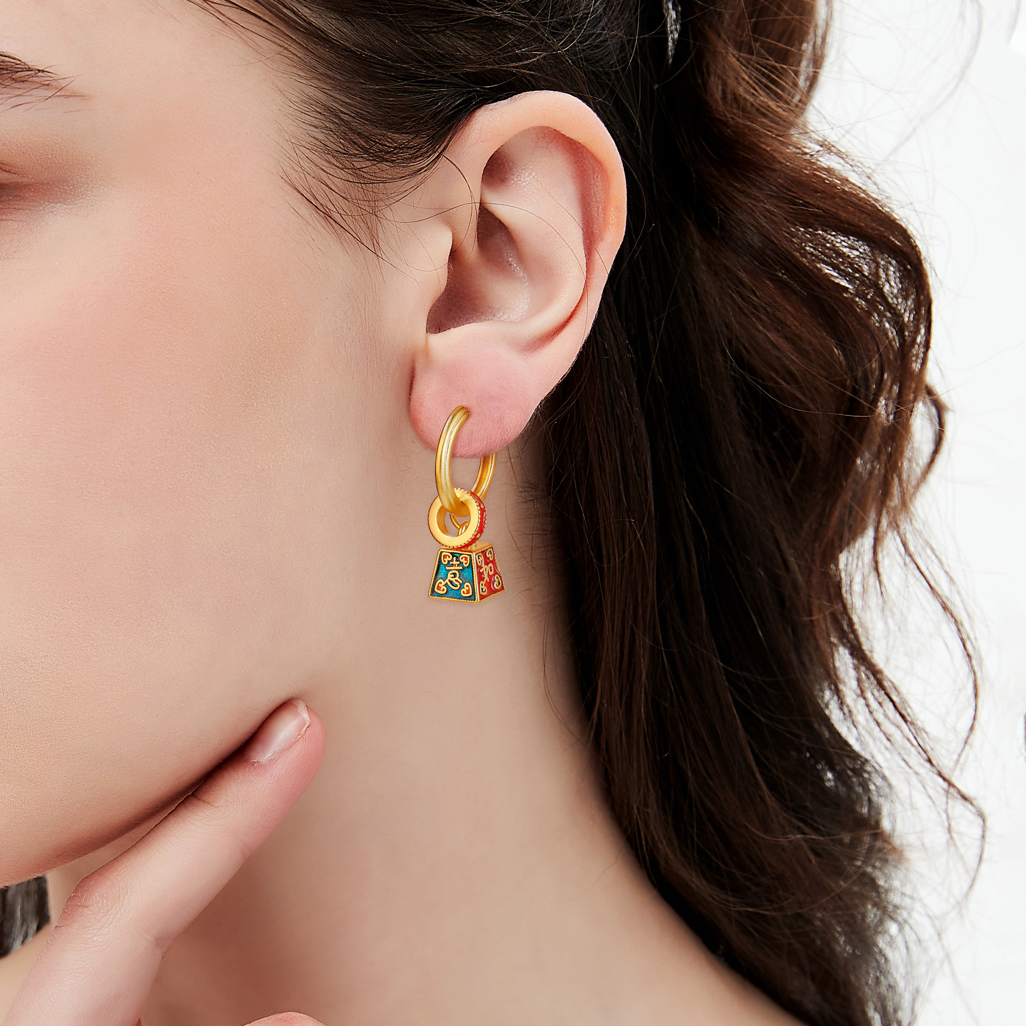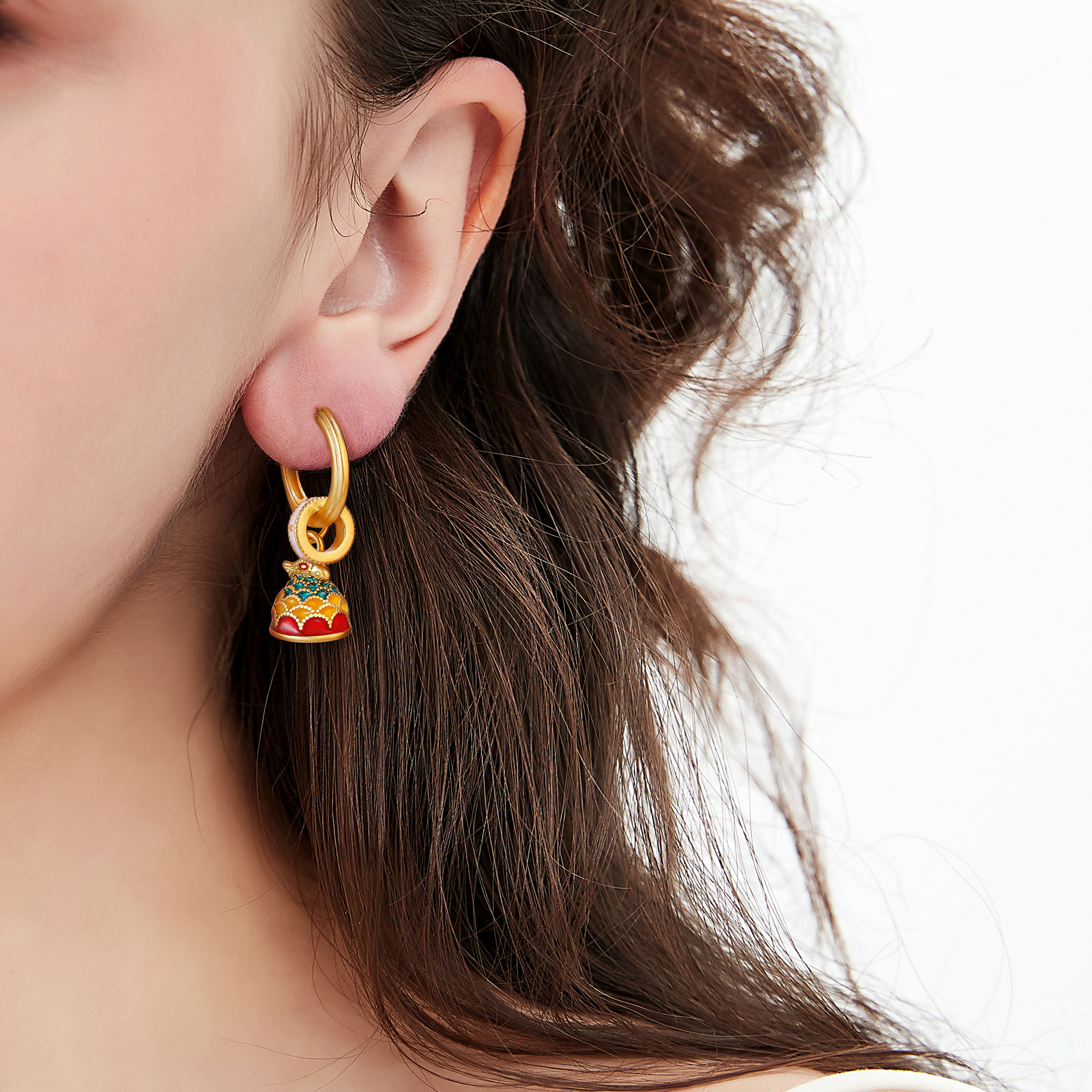 新中式国风称心如意耳环女新款珐琅玄学旺财耳饰锦鲤耳圈红色耳坠