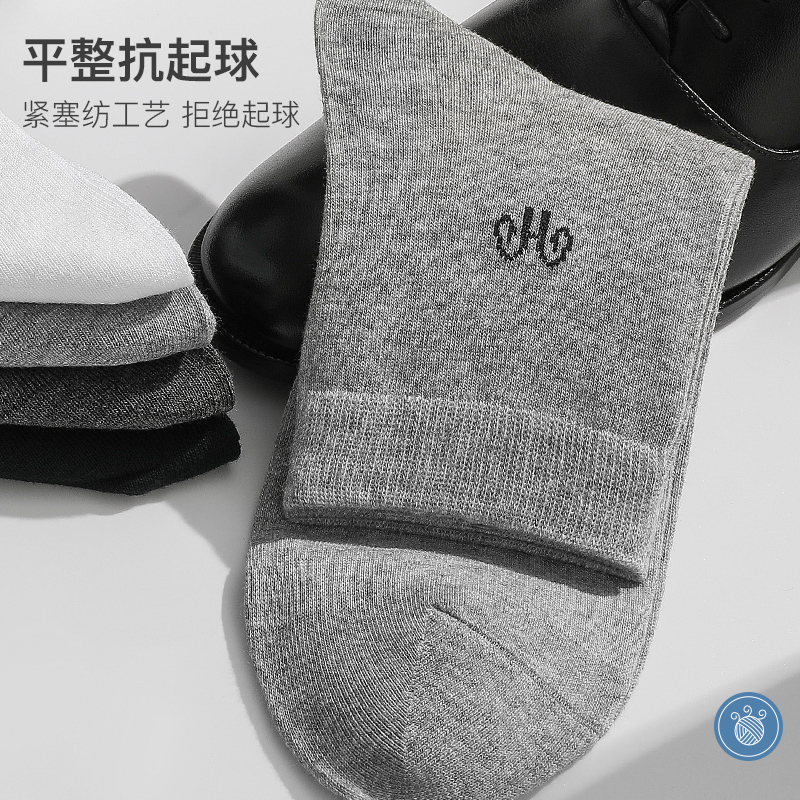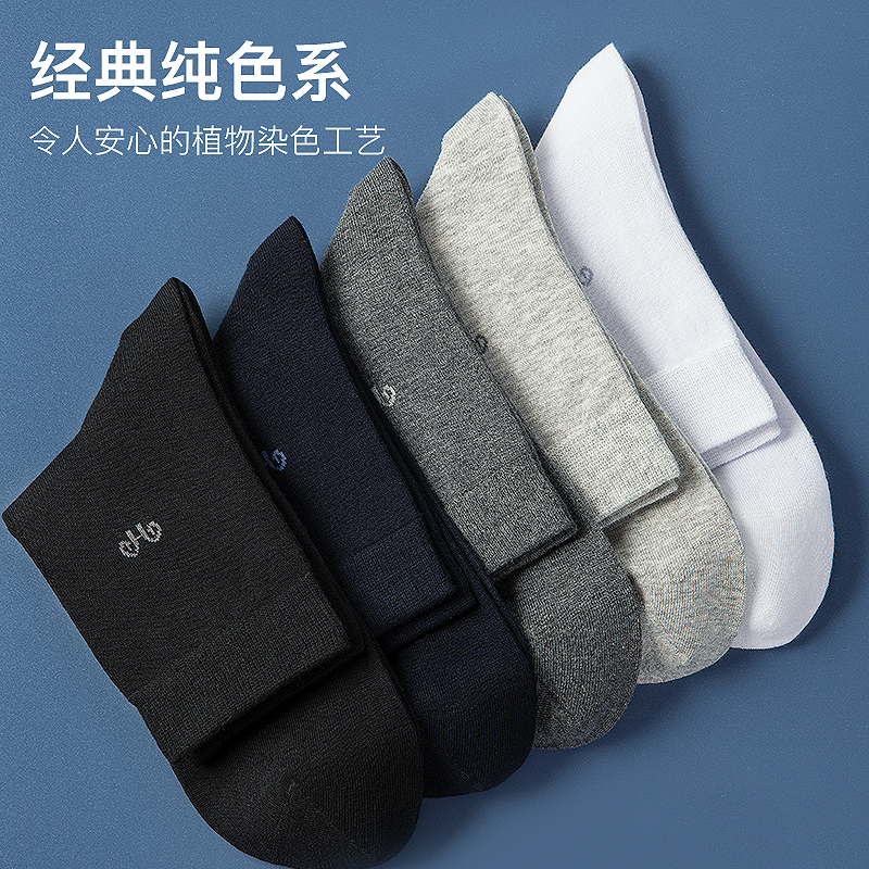 恒源祥袜子男士纯棉春夏季薄款长筒黑色全棉抗菌防臭吸汗中筒袜